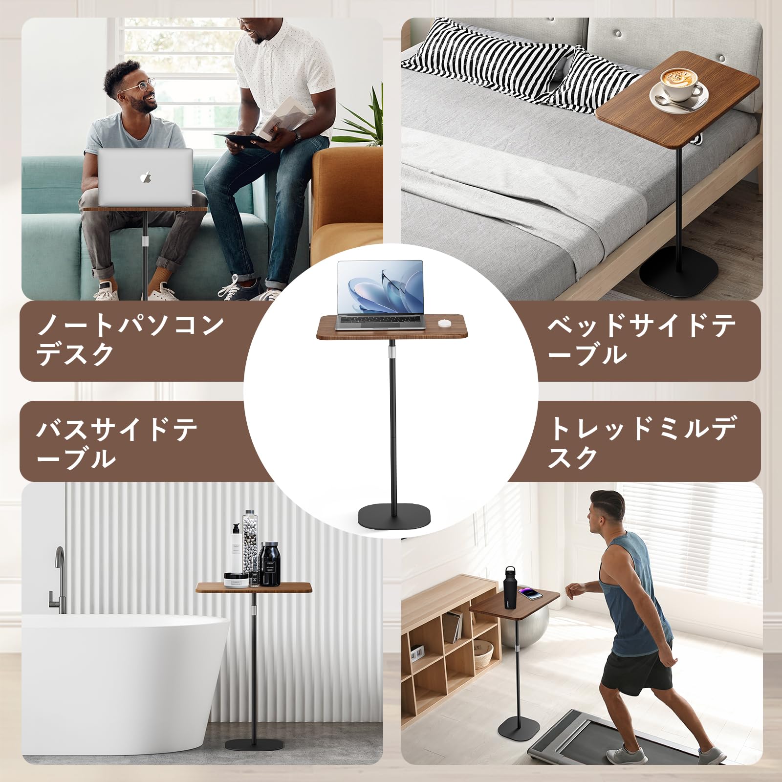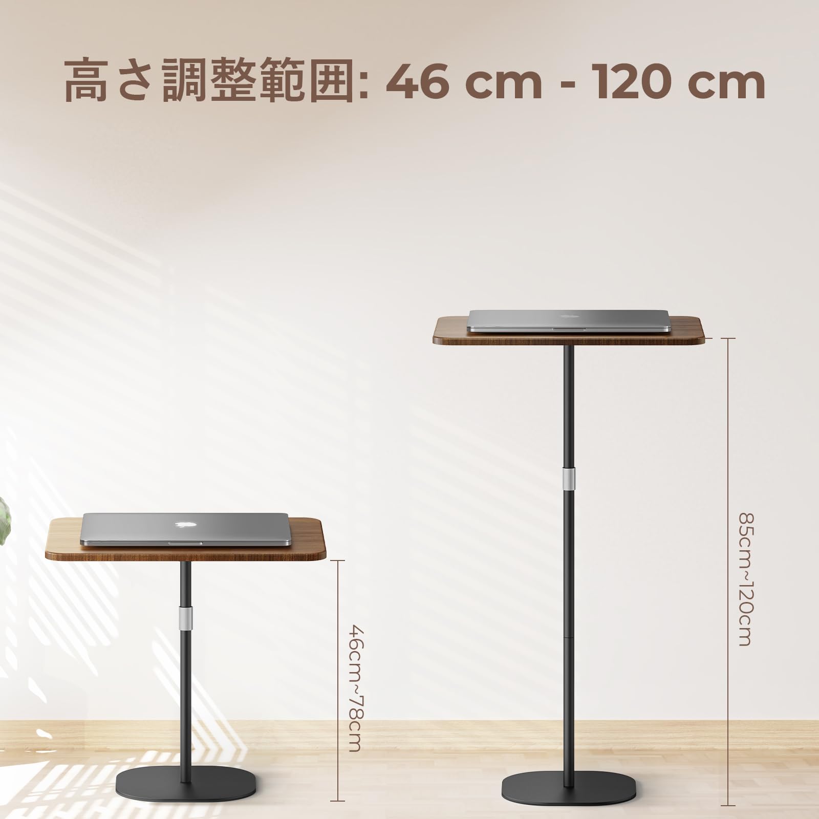 ノートパソコン用スタンディングデスク サイドテーブル ベッドサイド ソファ 寝室テーブル 昇降式デスク ハイテーブル プロジェクター台 46cm〜120cm高さ調節可能 おしゃれ 簡単組立 オフィス 会議室 ベッドルーム用 くるみいろ
