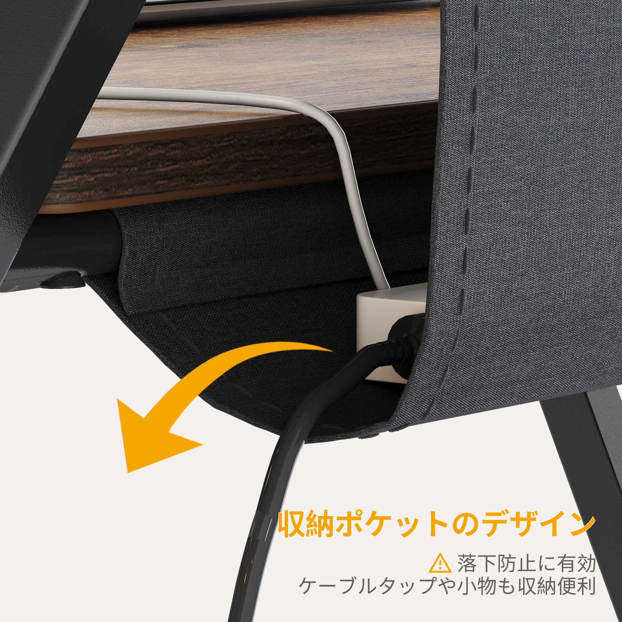 [小物の収納] モニタースタンドと収納ポケットのデザインで小物を収納でき、天板もすっきりします。