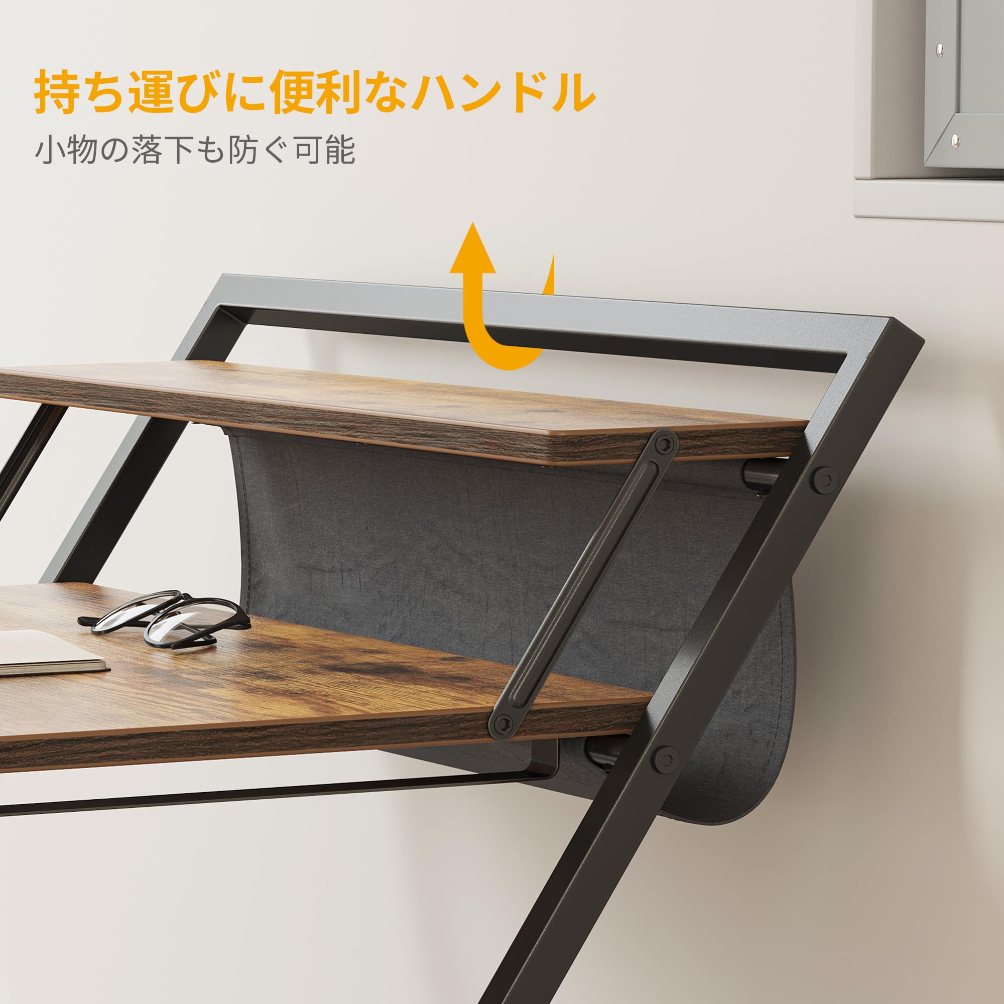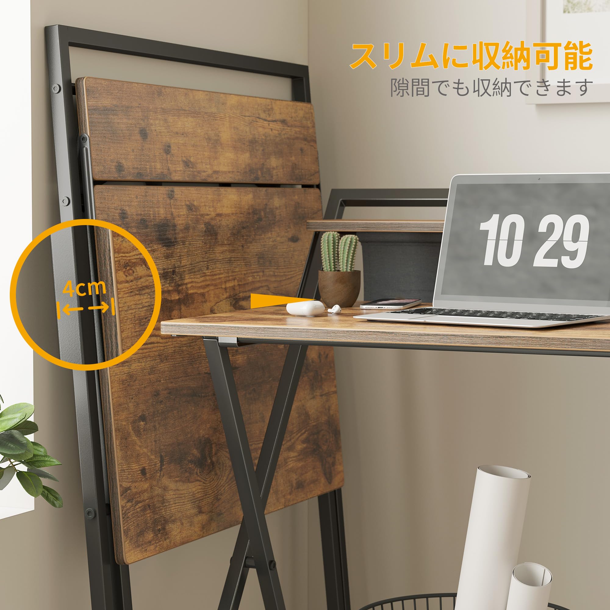 【セール】CubiCubi 折りたたみ勉強机 モニター台&落ち防止袋付き 5分簡単組み立て 収納便利 一人暮らし 幅60×40cm ブラウン