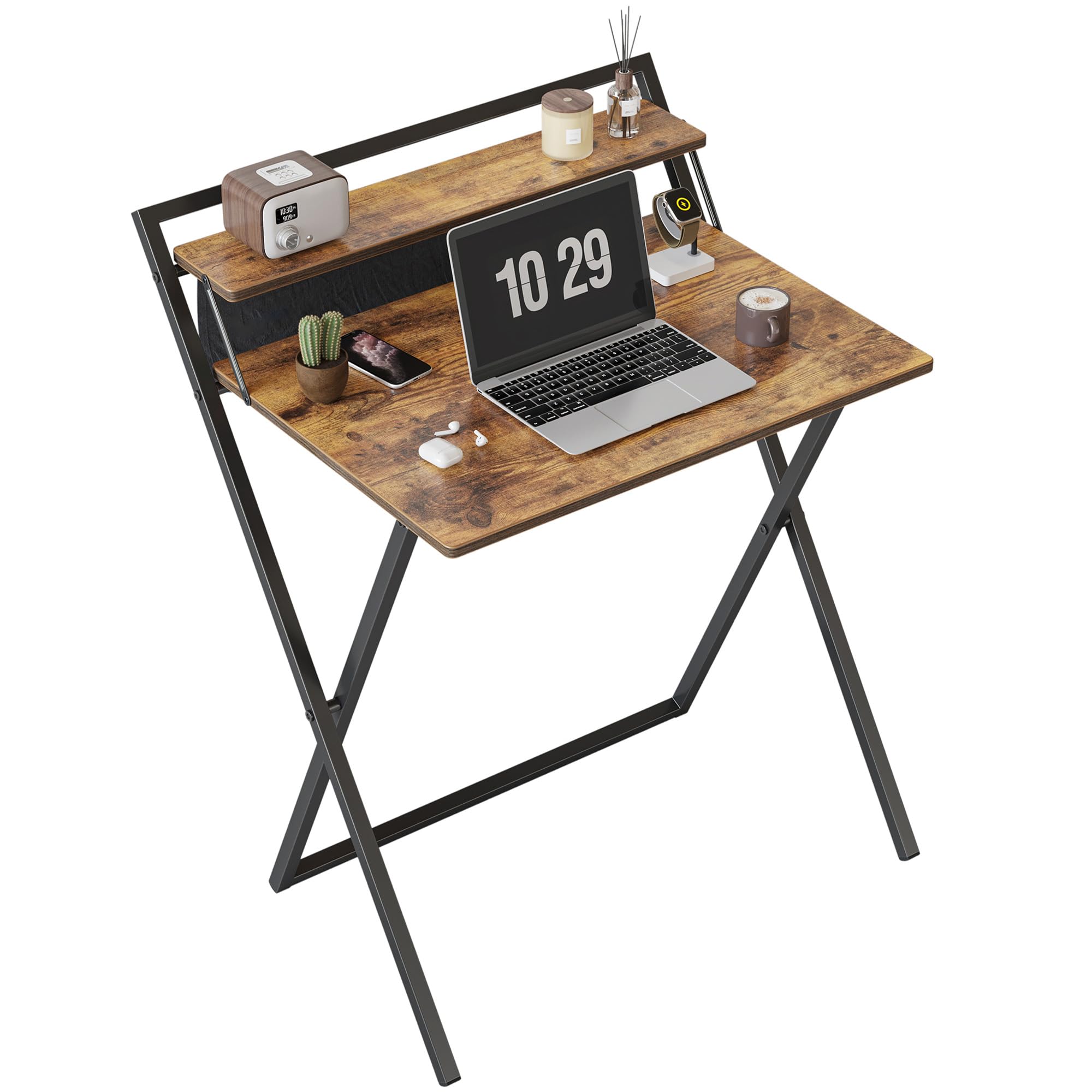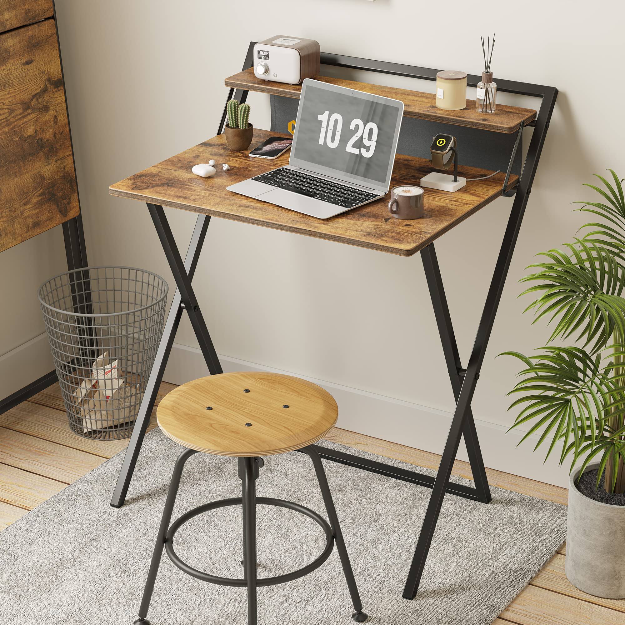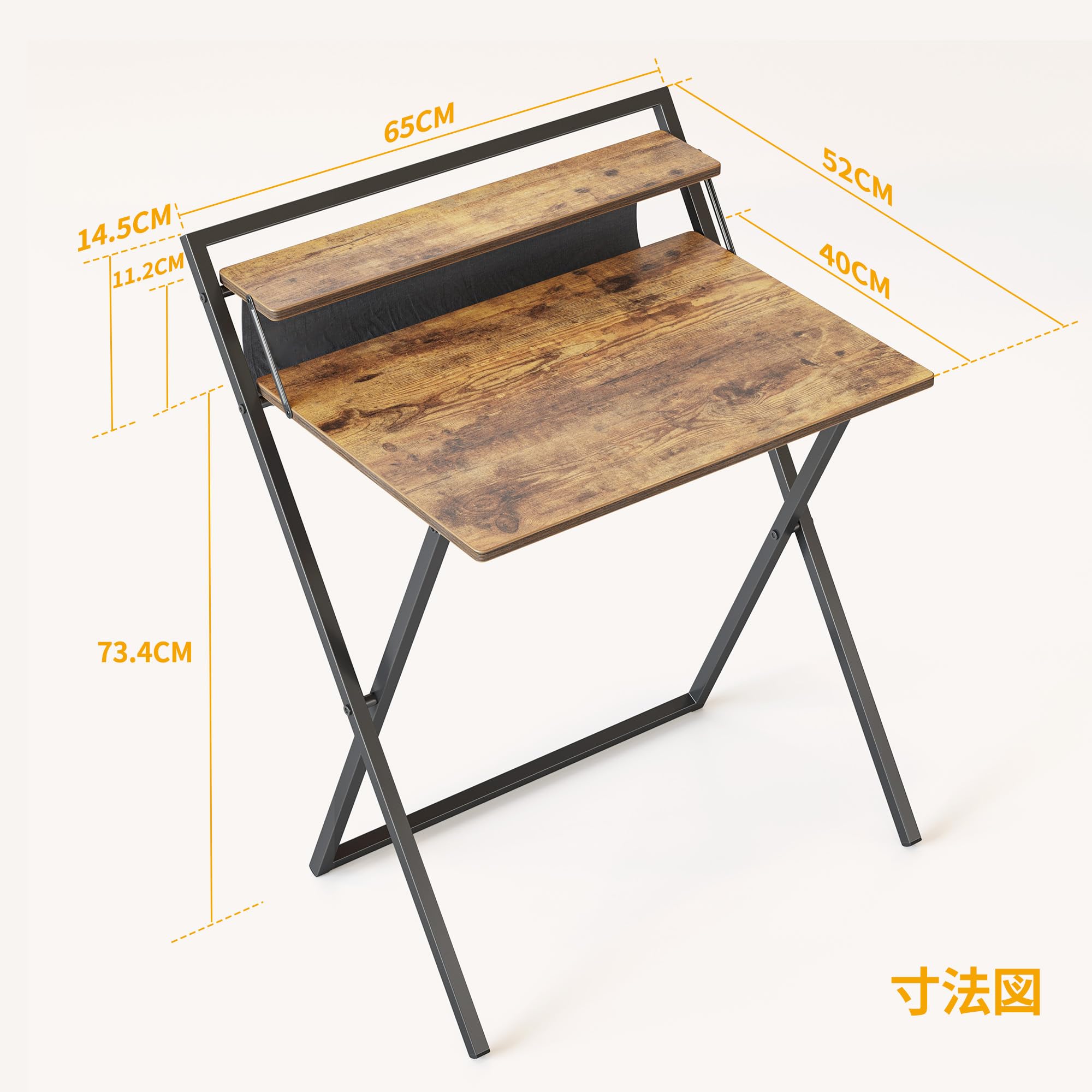 CubiCubi 折りたたみ勉強机 モニター台&落ち防止袋付き 5分簡単組み立て 収納便利 一人暮らし 幅60×40cm ブラウン
