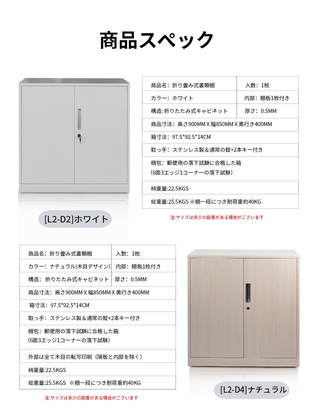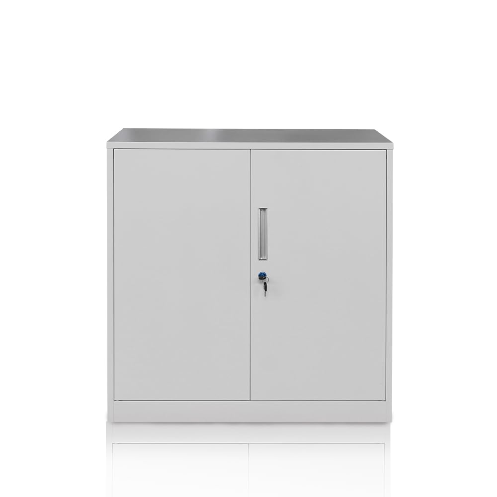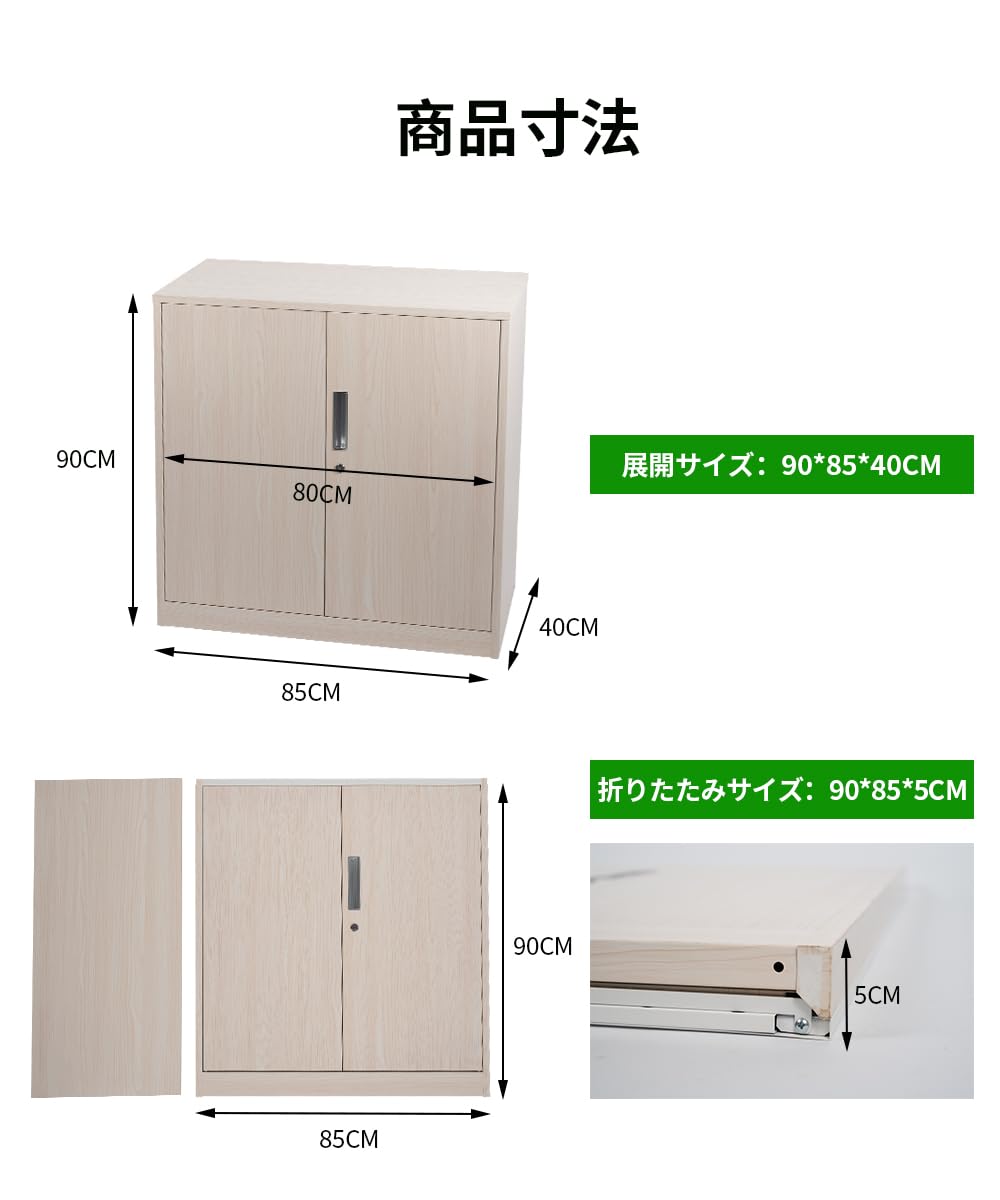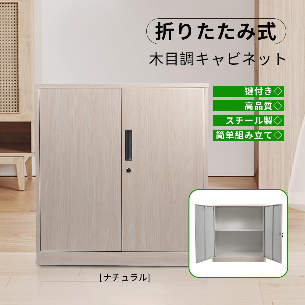 折りたたみ式キャビネット カウンター下収納 ラック カギ付き スチール書庫 両開き書庫 オフィス 学校 病院 自宅 法人 (ホワイト)
