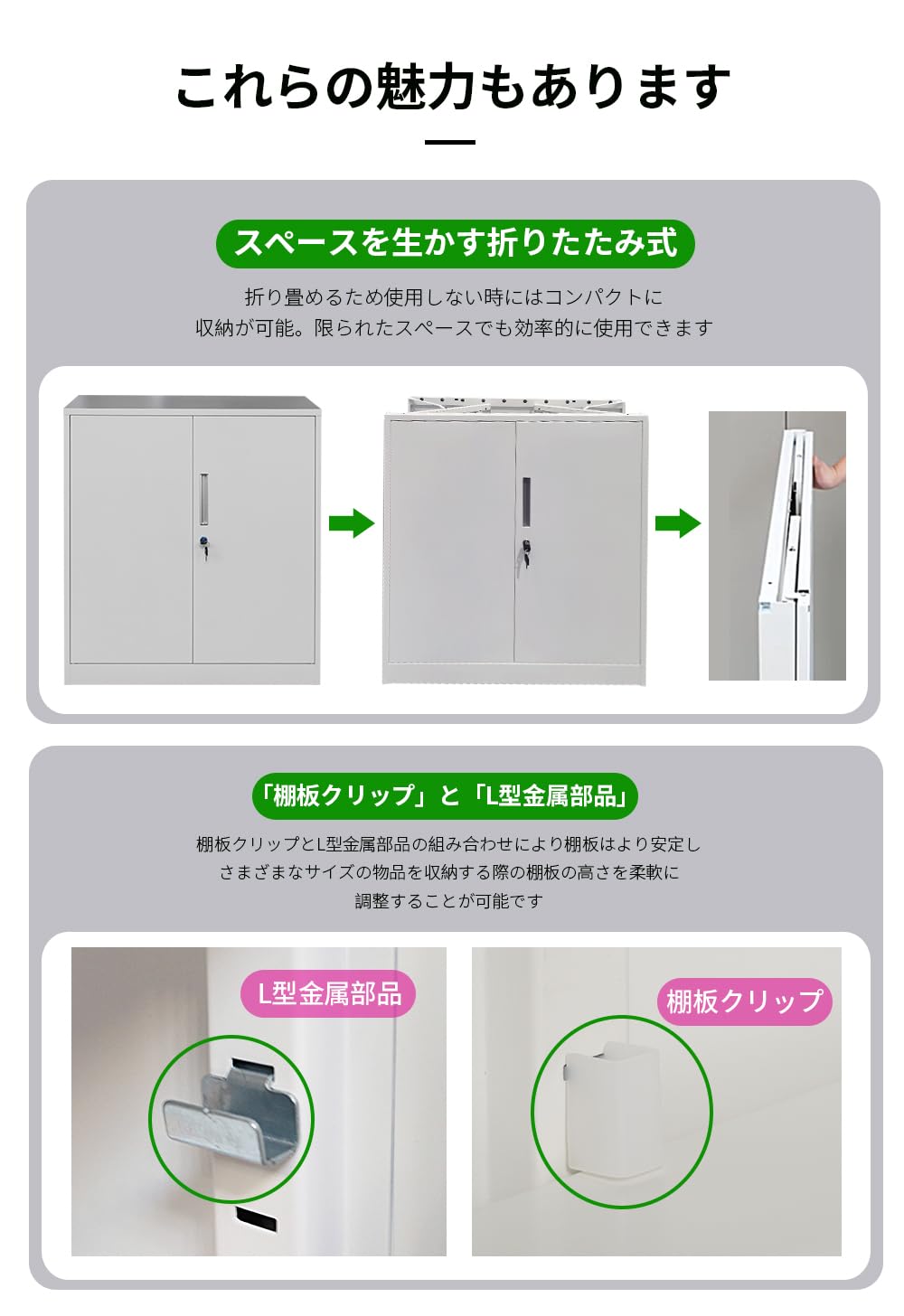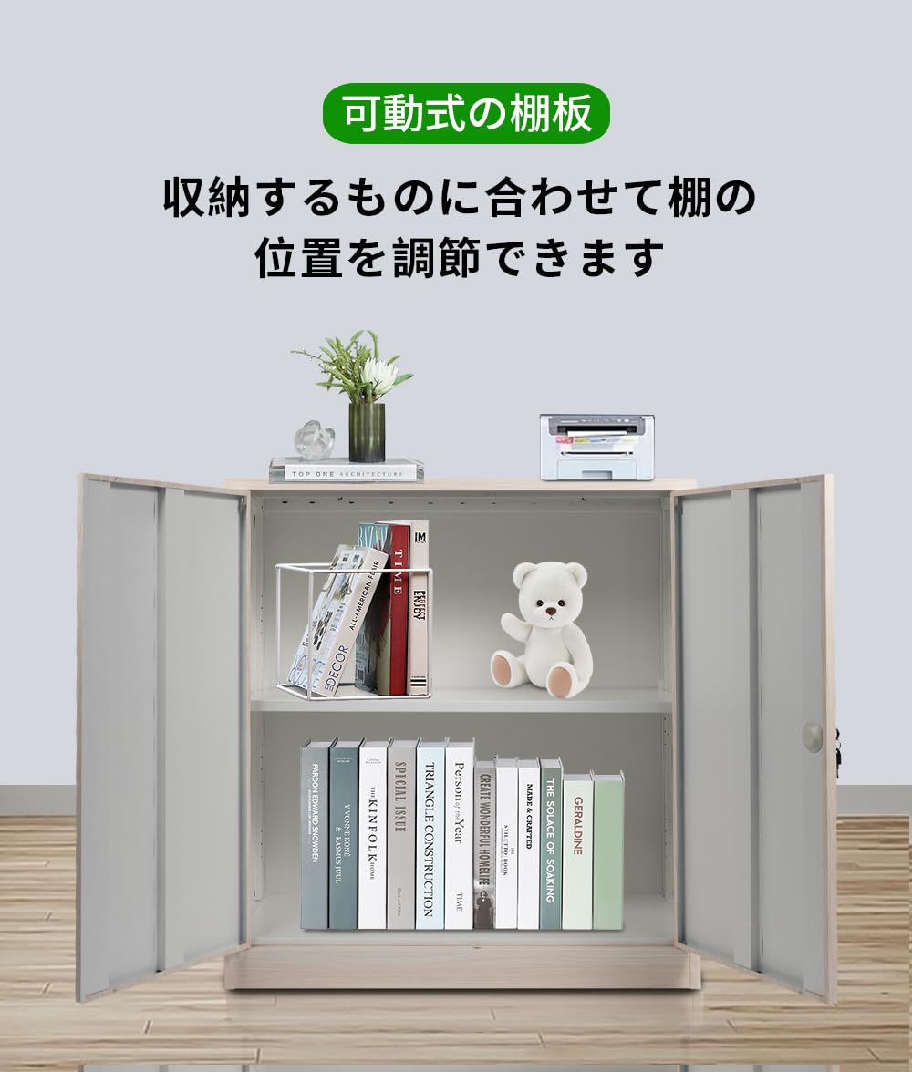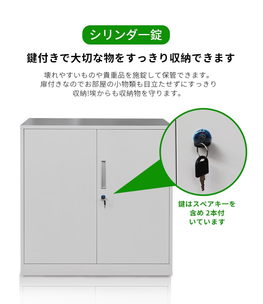 【汎用性と安心感】錠付き両開きドアで、実用性を高めるだけでなく、使用者に安心感と信頼性をもたらします。オフィスや自宅での機密情報の保管に理想的な選択肢です。