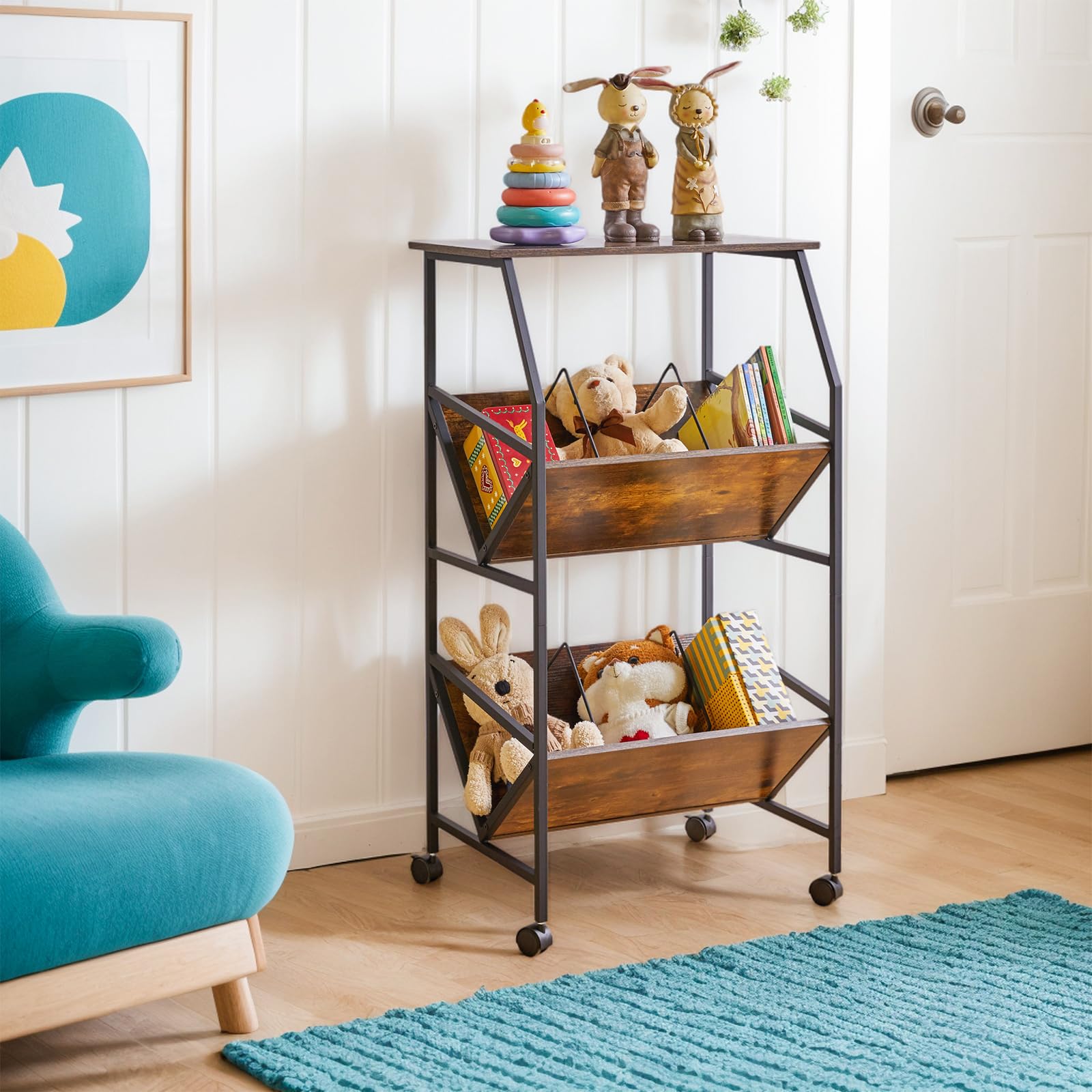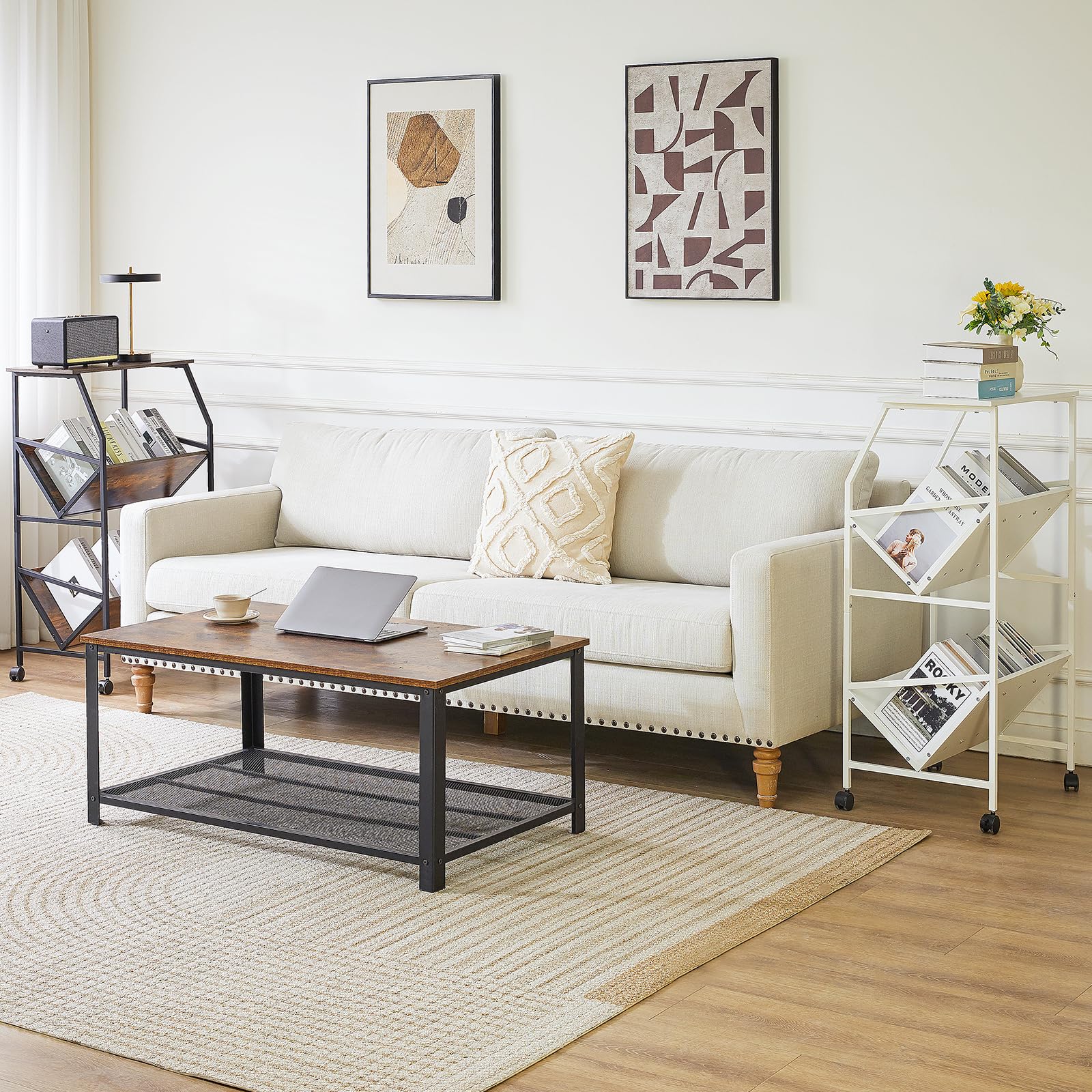 IBUYKE ファイルワゴン ファイルラック ファイル棚 仕切り付き ファイル収納 書類棚 斜め A4収納 キャスター付き 天板付き 棚 ワゴン 幅56×奥行29.5×高さ101cm ブラウン JPTMJ028H