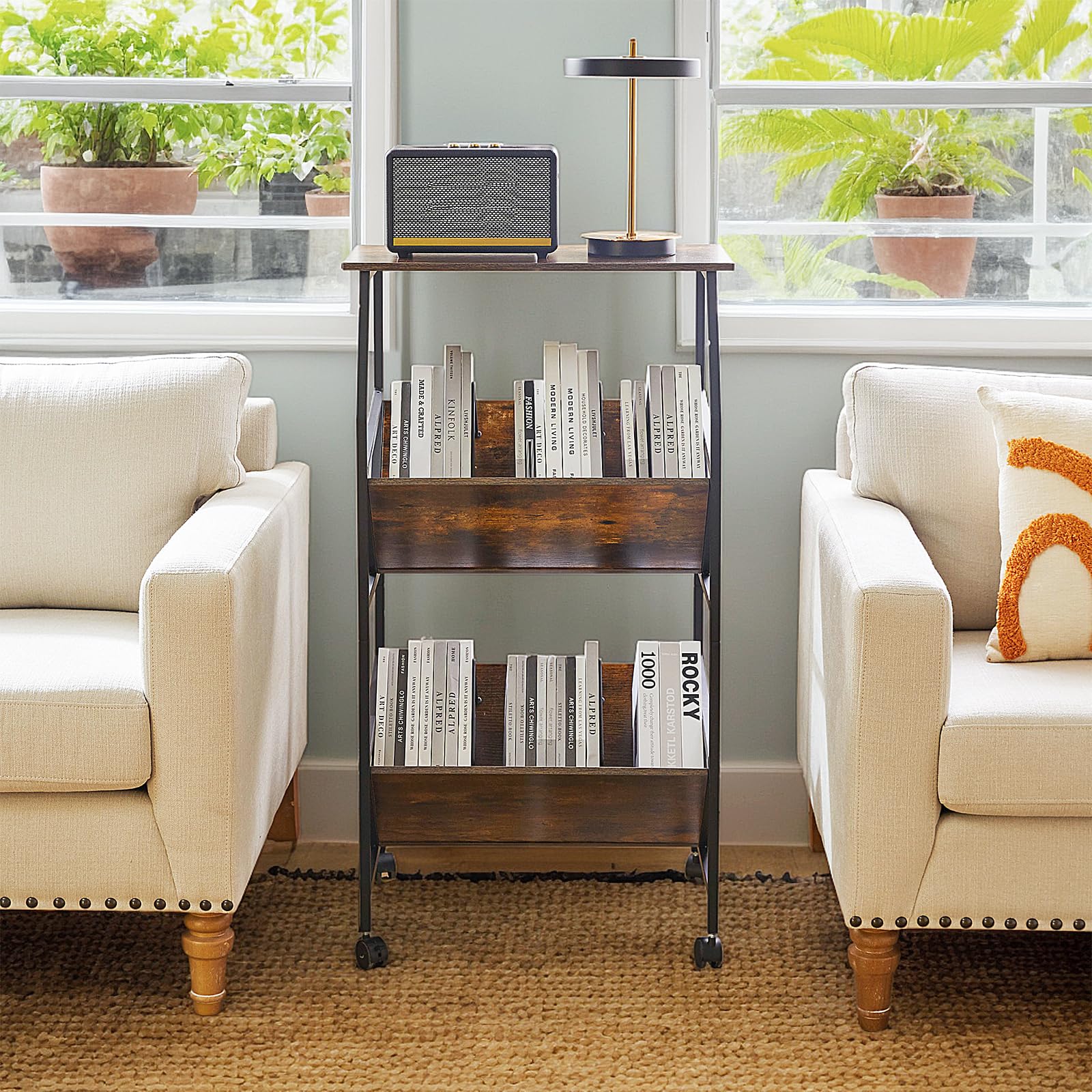 【新着】IBUYKE ファイルワゴン ファイルラック ファイル棚 仕切り付き ファイル収納 書類棚 斜め A4収納 キャスター付き 天板付き 棚 ワゴン 幅56×奥行29.5×高さ101cm ブラウン JPTMJ028H | GIGATERA