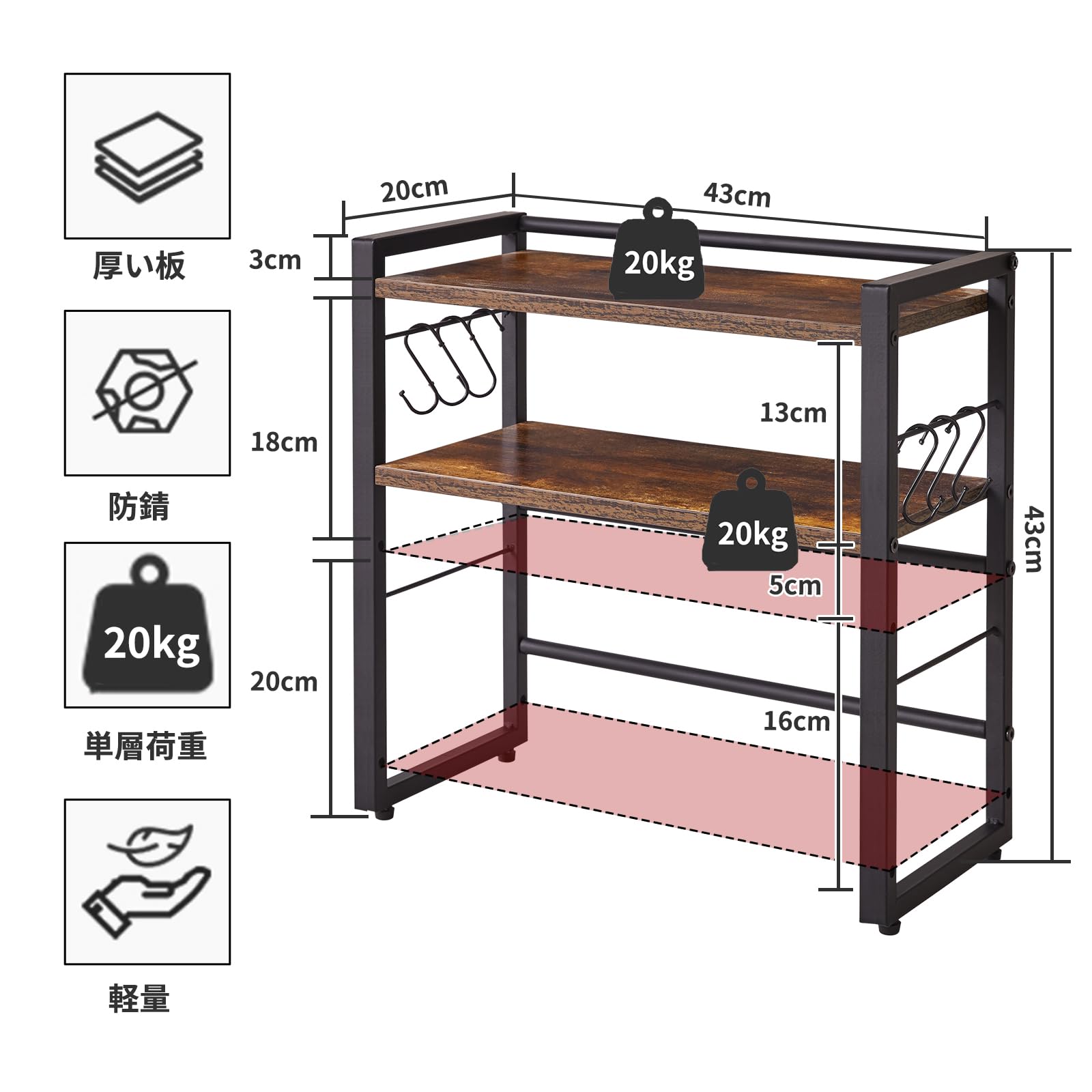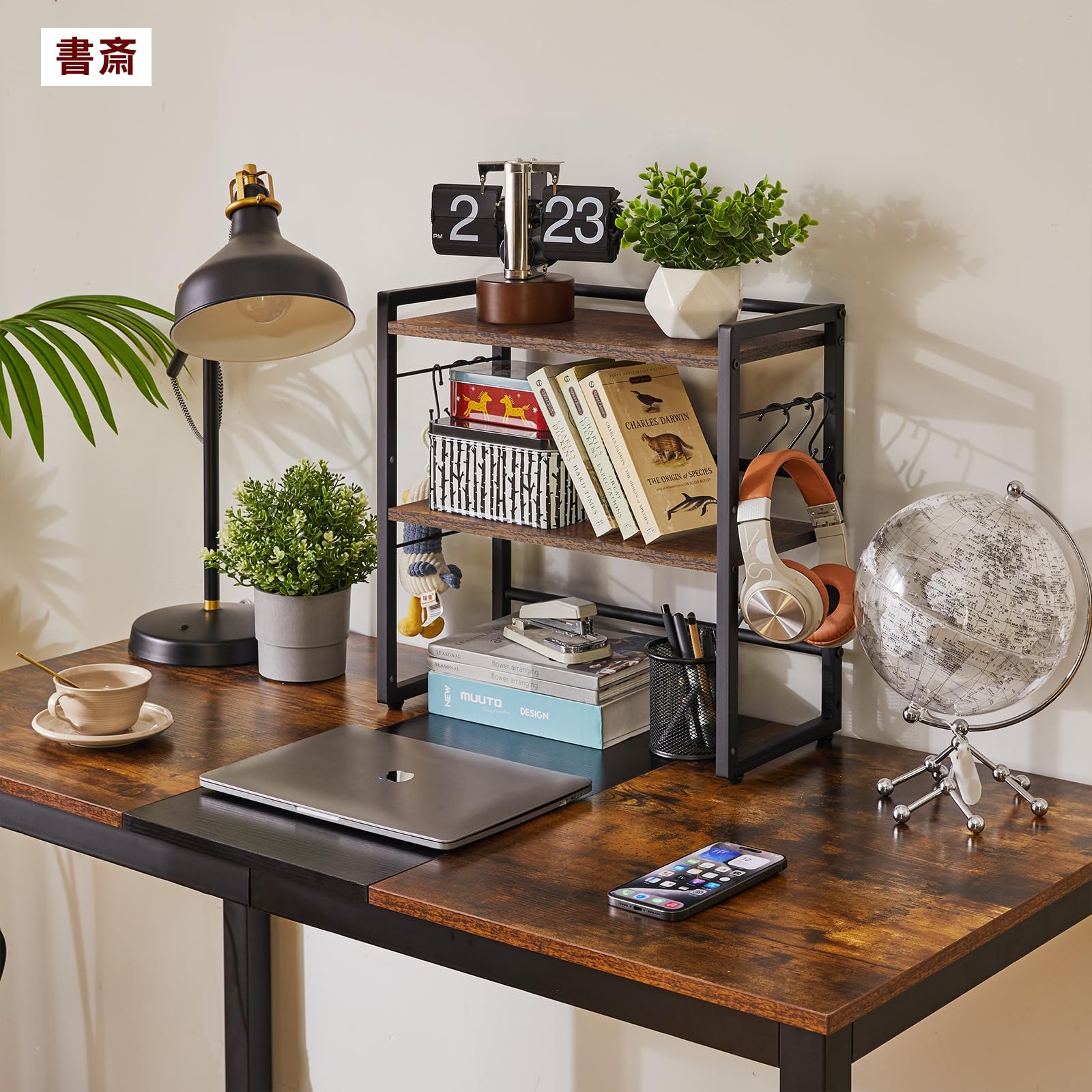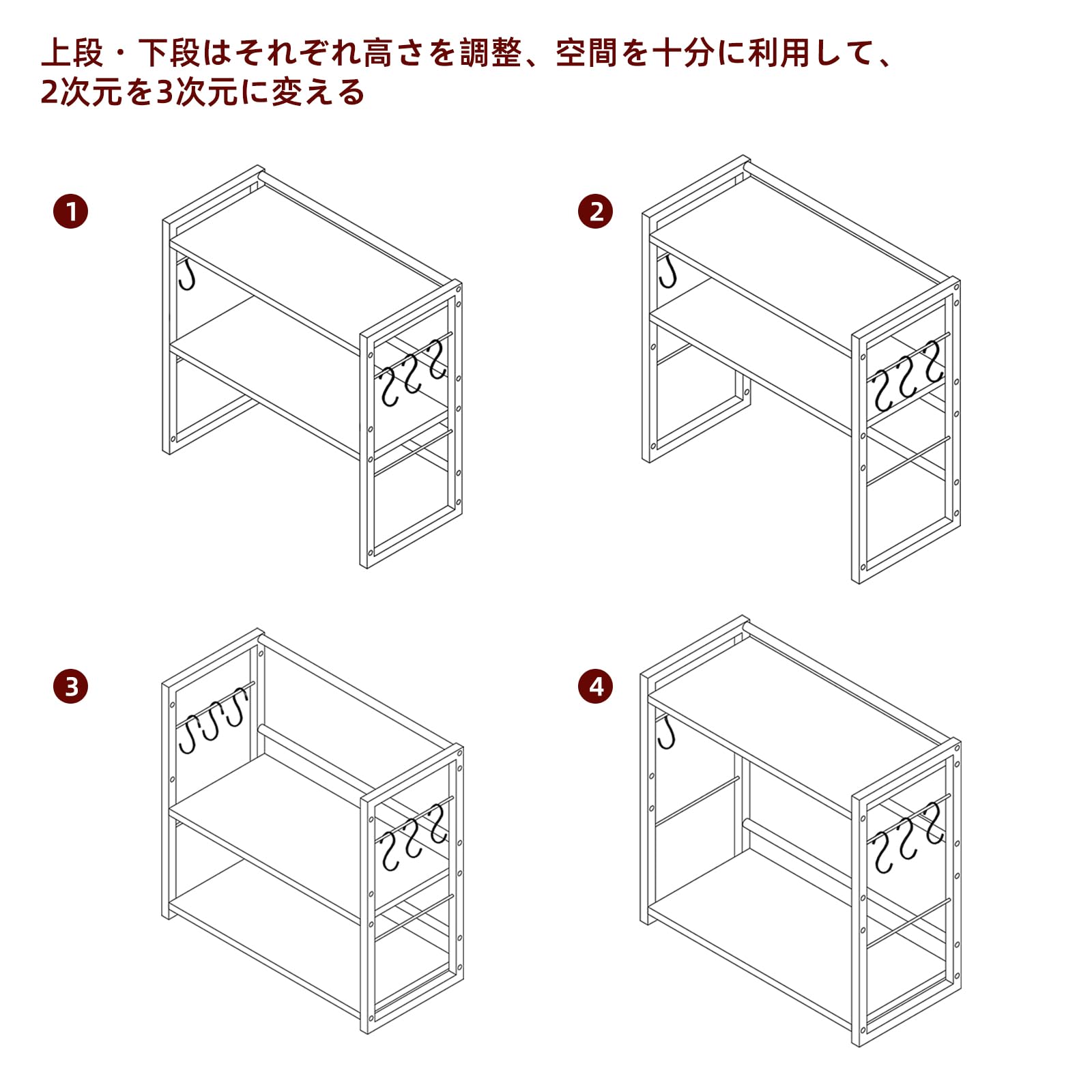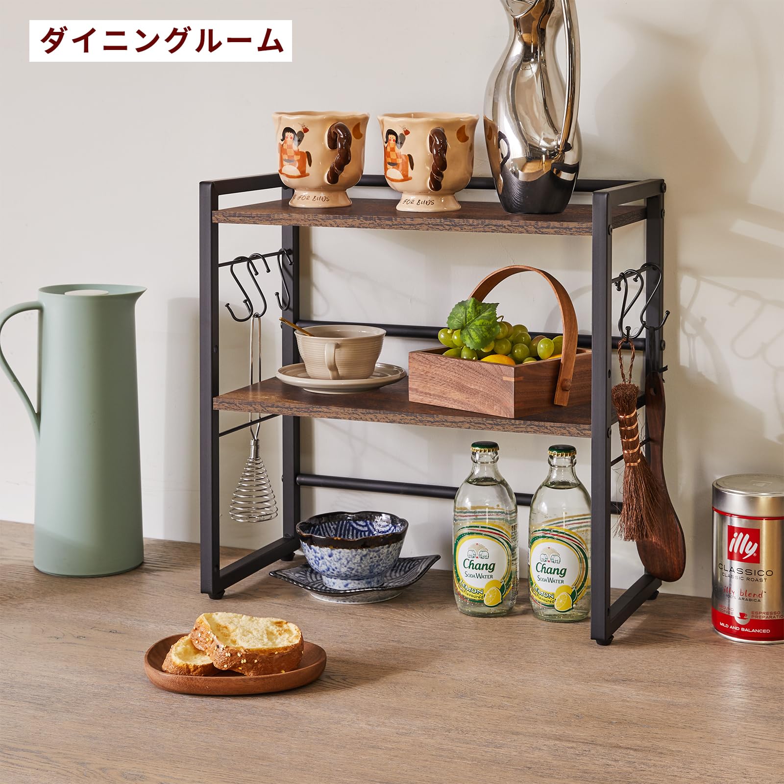 卓上 ラック デスクシェルフ 2段 机上ラック 台 本棚 フックが6つ 小物収納棚 キッチン収納 幅43×奥行20×高さ43cm 棚板高さ調節可 ヴィンテージ YD-DSR001H