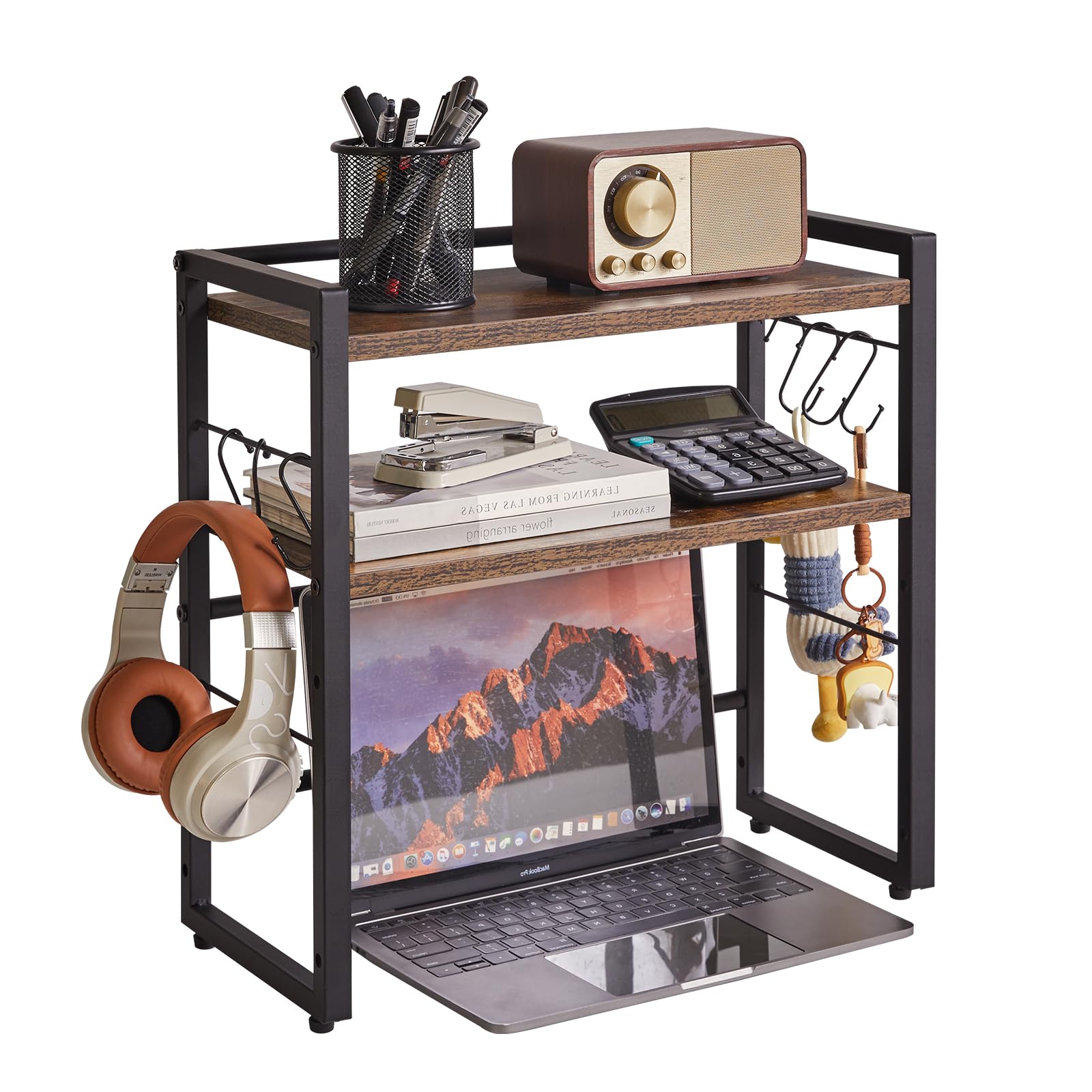 【特価】卓上 ラック デスクシェルフ 2段 机上ラック 台 本棚 フックが6つ 小物収納棚 キッチン収納 幅43×奥行20×高さ43cm 棚板高さ調節可 ヴィンテージ YD-DSR001H | GIGATERA