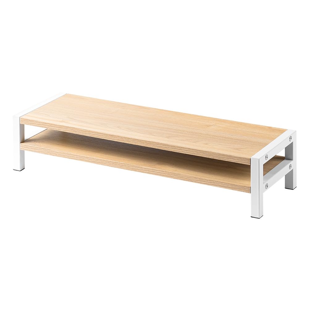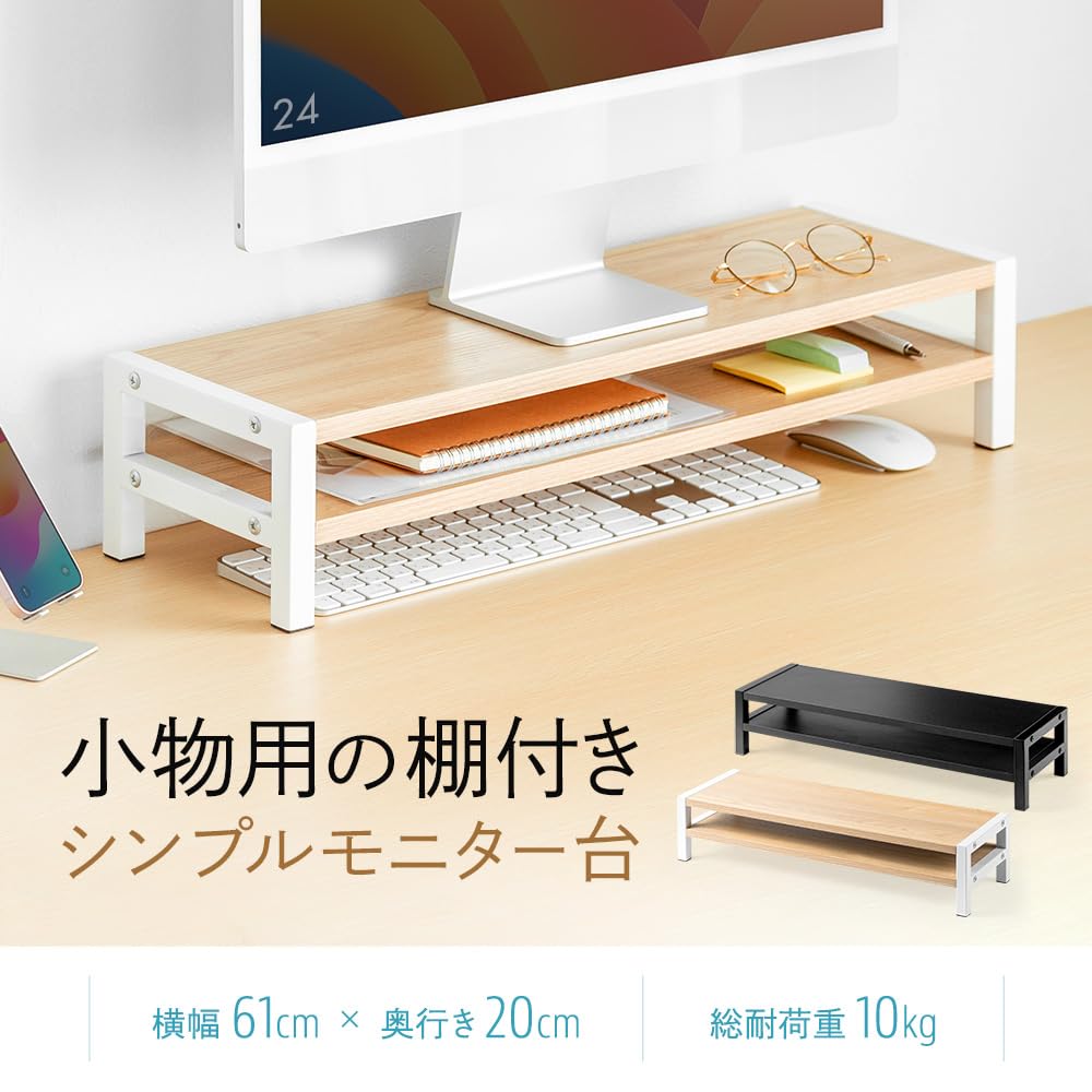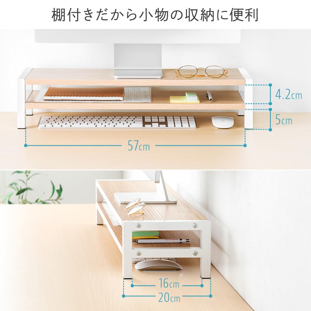 イーサプライ モニター台 2段 机上ラック 卓上 幅60cm 奥行20cm 高さ13cm 耐荷重10kg 木製 棚 キーボード収納 ライトブラウン EEX-DES26LBR