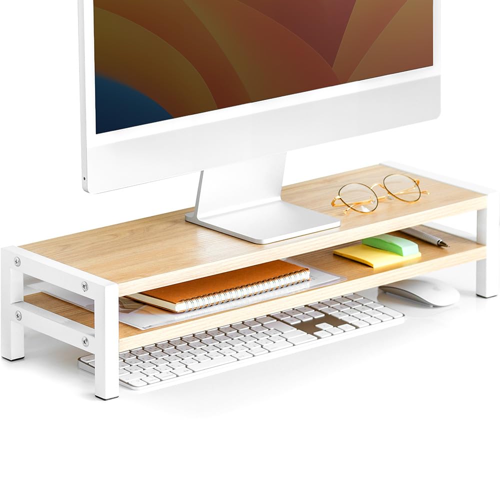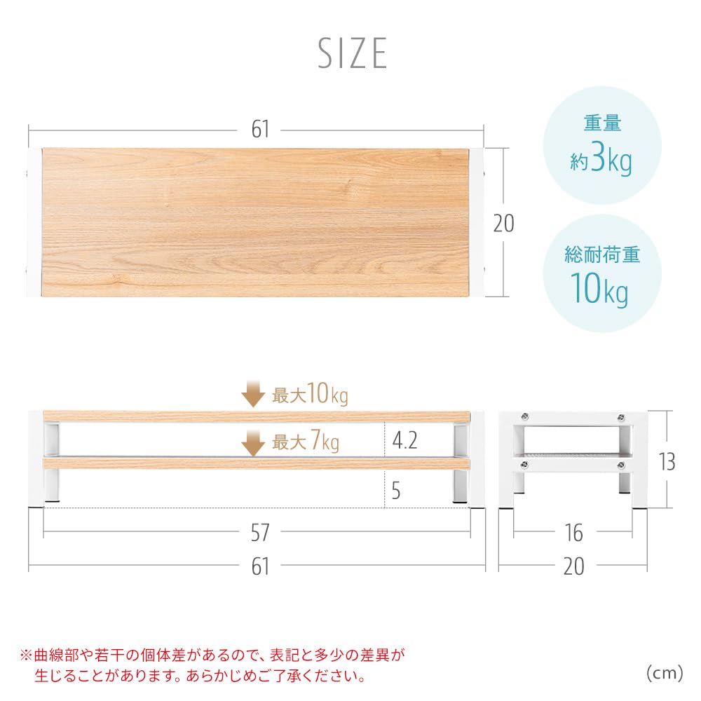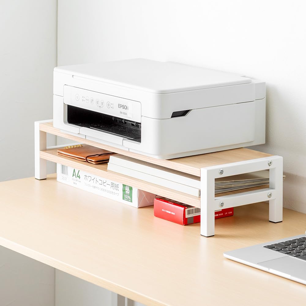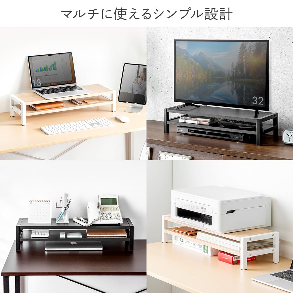イーサプライ モニター台 2段 机上ラック 卓上 幅60cm 奥行20cm 高さ13cm 耐荷重10kg 木製 棚 キーボード収納 ライトブラウン EEX-DES26LBR