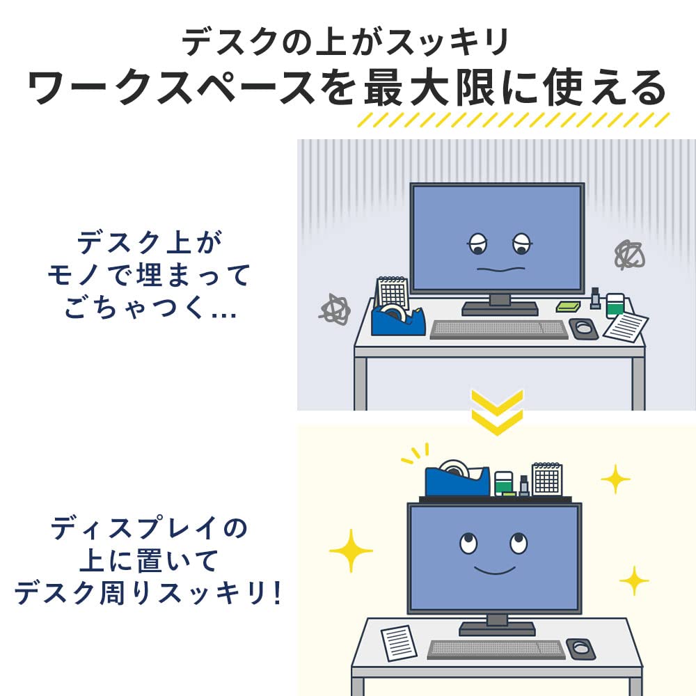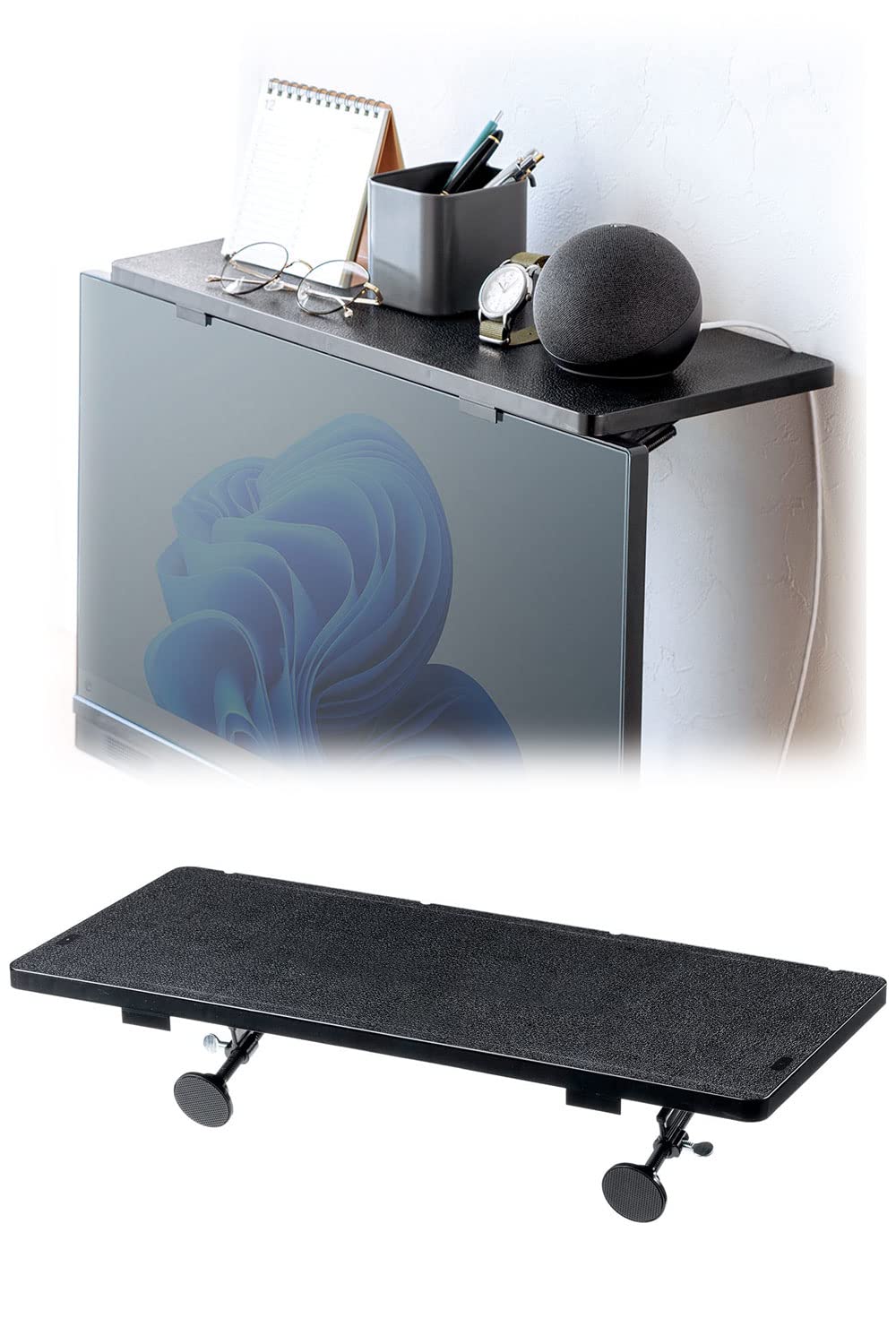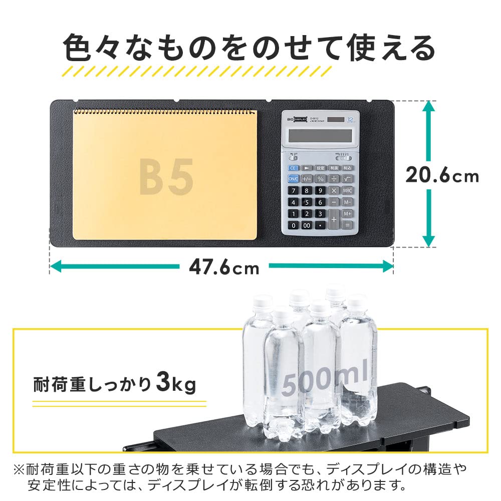 【新着】イーサプライ ディスプレイボード 上棚 モニター テレビ 幅47.6cm 奥行20.6m 耐荷重3kg 湾曲モニター対応 小物収納 工具不要 EEX-DPR04