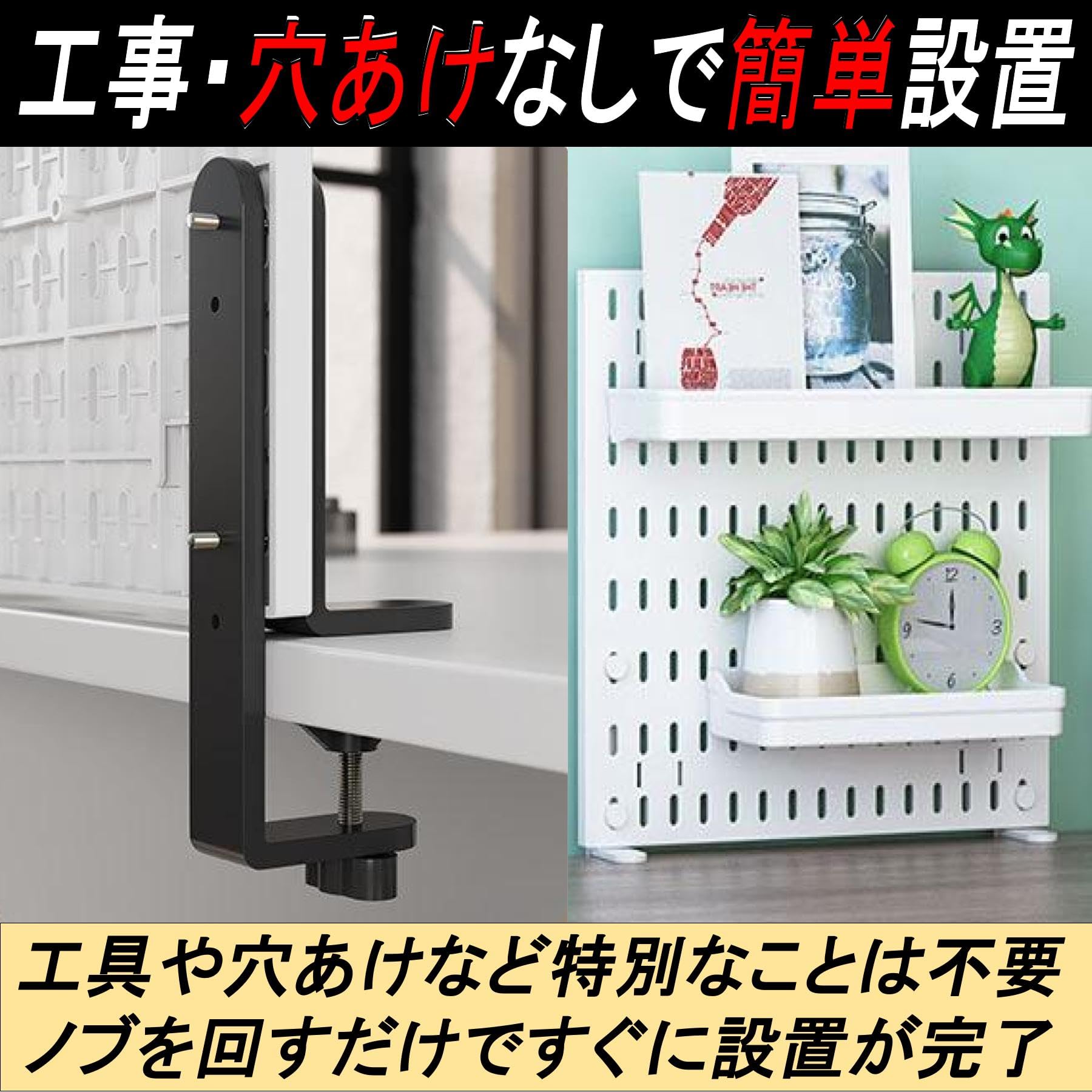 ?【有孔ボード・パンチングボード・ペグボードクランプ】有孔ボード・パンチングボード・ペグボードをデスクや机・テーブルに簡単に取り付けることができます。整理整頓を効率よく行い、スペースを最大限に活用するための便利なアイテムです。