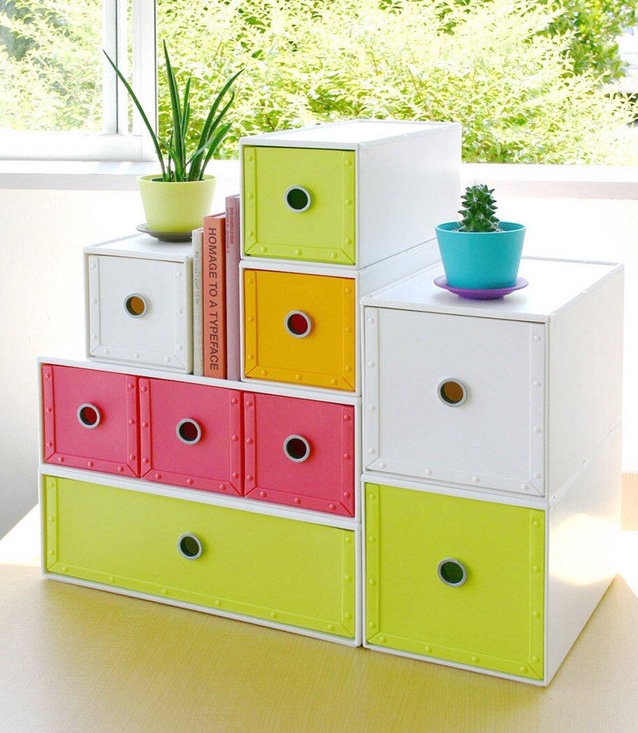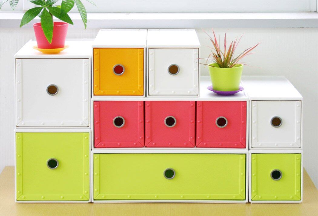モジュール設計により、積み重ねができ好きなサイズを自由に組み合わせられる収納ボックス