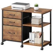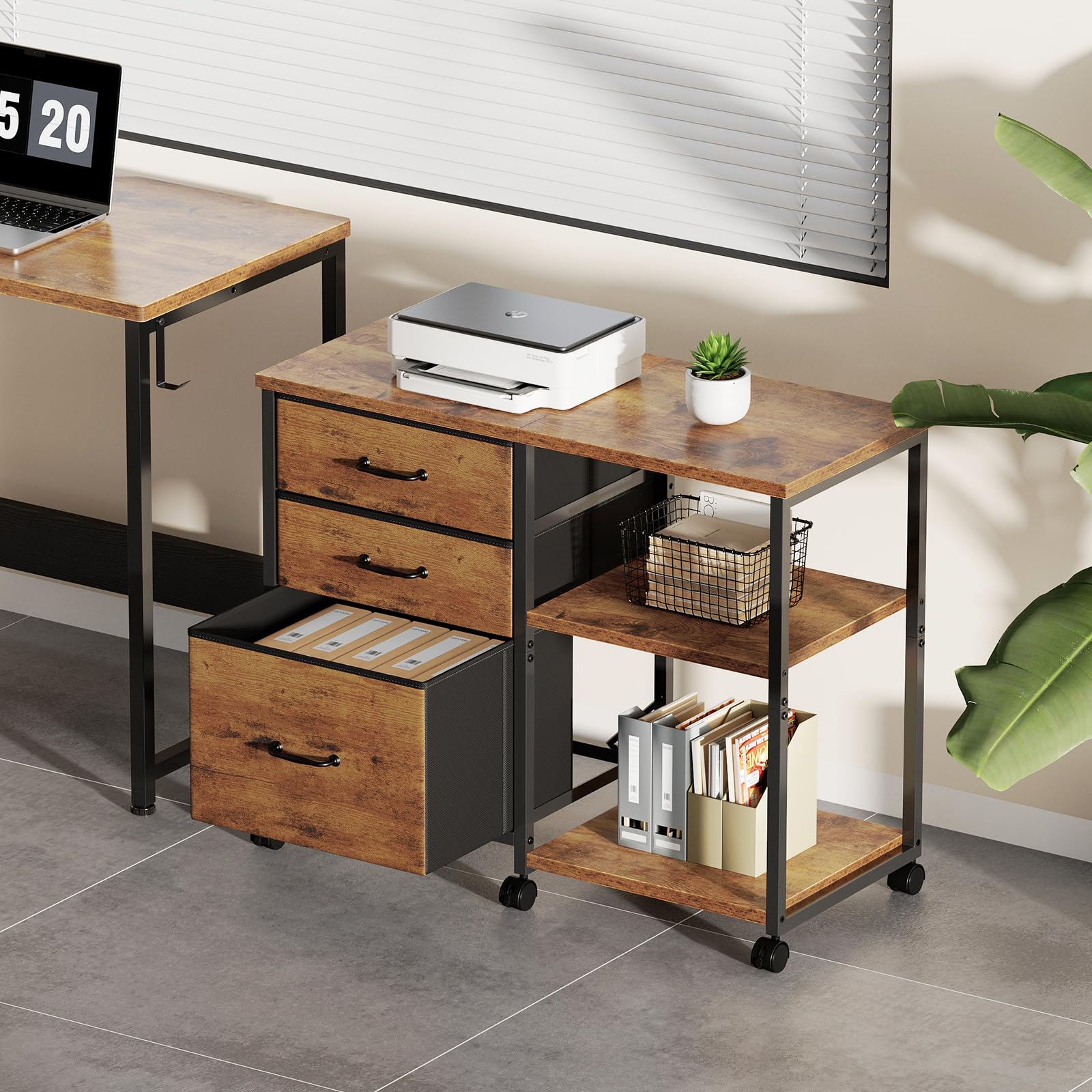 サイドキャビネット デスクワゴン 布製 袖机 層板付き サイドワゴン 3段 オフィスワゴン A4対応 プリンター台 大容量 キャスター付き デスク下収納 ビンテージ+ビンテージ