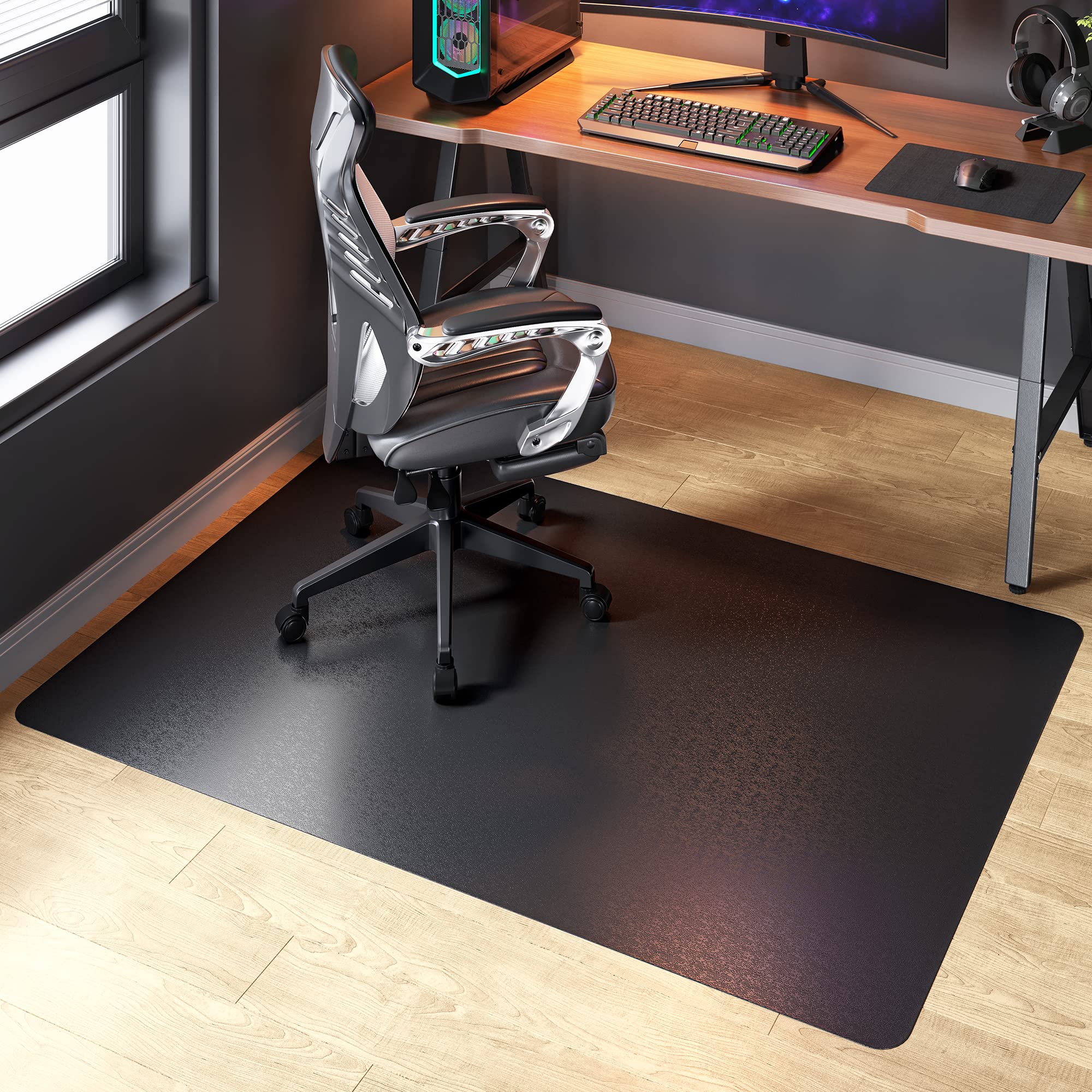 【新着】【 限定】チチロバ TITIROBAチェアマット 床保護マット 120×90×0.15cm ゲーミングチェアマット PVCマット 傷防止 椅子 デスク フロア 床暖房対応 防音 滑り止め 両面テープ付き おしゃれ カーペット 黒 22FC001
