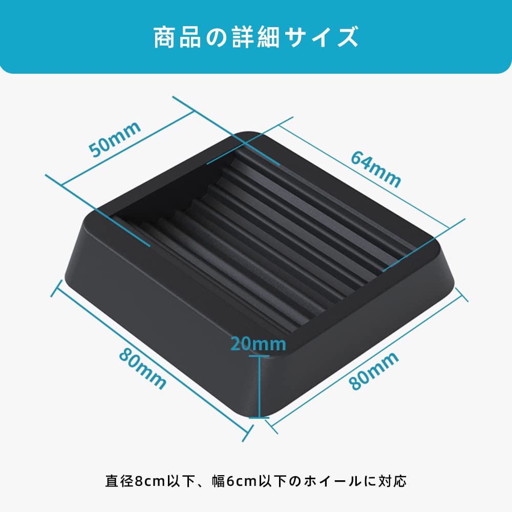 【商品仕様】サイズ :8cm*8cm*2cm、直径8cm以下、幅6cm以下のホイールに対応。設置前に、家具キャスターの適切なサイズを確認してください。