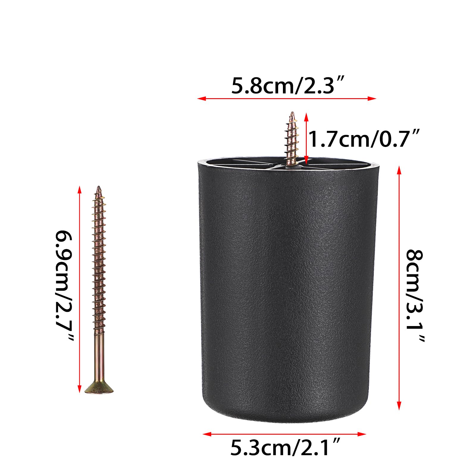 【在庫処分】BSTKET ソファー足 家具脚 キャビネット脚 ソファ足 強い安定性 家具ソファサポート脚 テーブル脚 ソファー用 本棚用 テーブル用 家具を高くする プラスチック製 4個セット ブラック 円筒形 8CM | GIGATERA