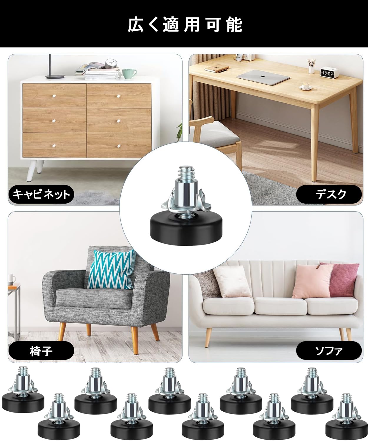 【広範な適用性】 テーブル、椅子、キャビネット、本棚、デスクなど、さまざまな家具に簡単に適合します。タイル、木製床など、あらゆる床材に適応します。