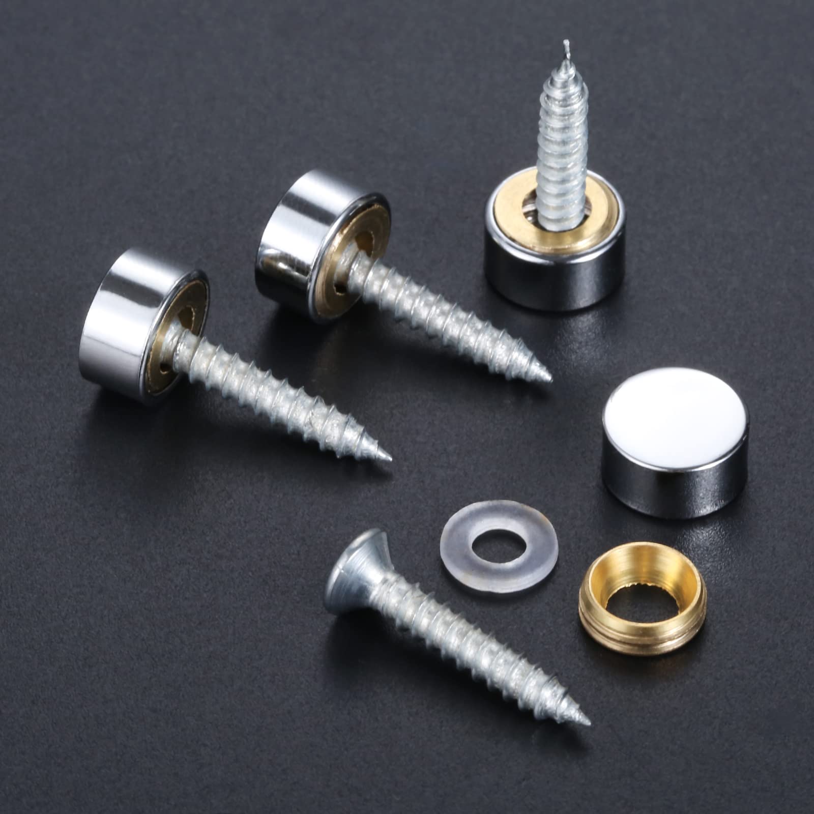 【仕様とサイズ】:カラー:シルバー 。材質:銅。サイズ:キャップ直径10mm 。ネジ直径3.5mm 。ネジの長さ:19.62mm。【パッケージ内容】:本体8個+取付ネジ8本+ネジワッシャー8個。(アンカーは付いていません。)
