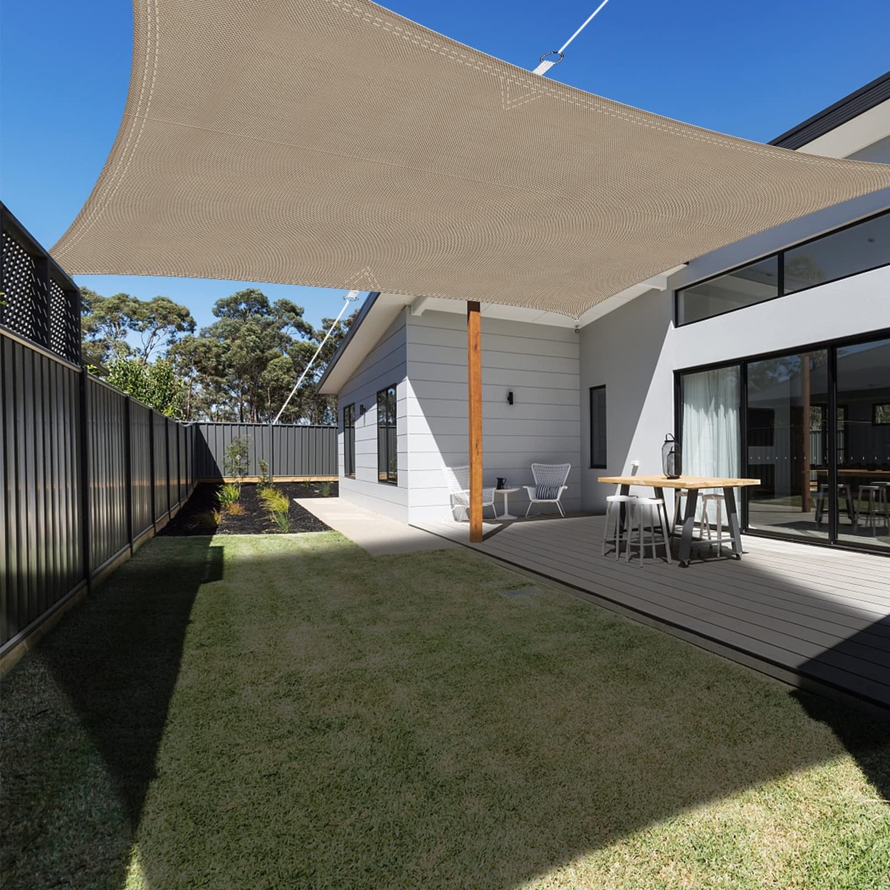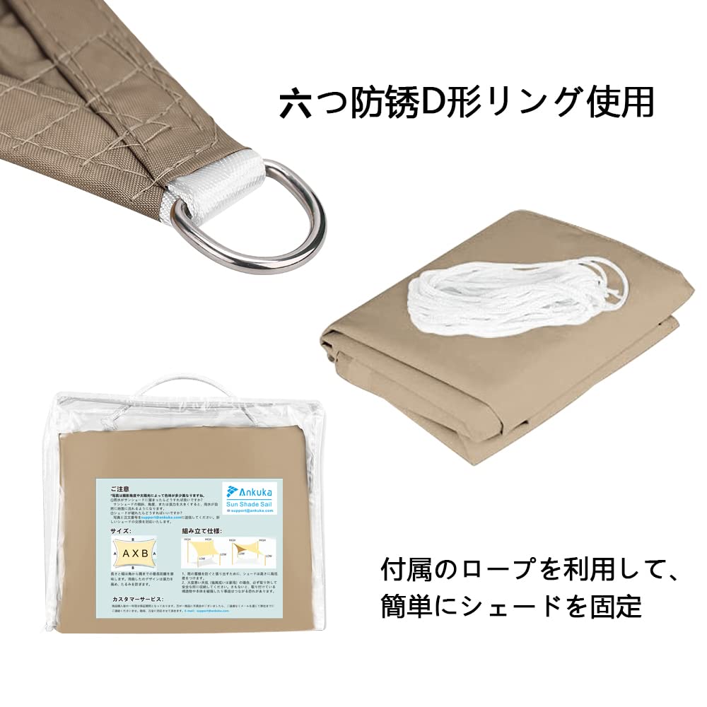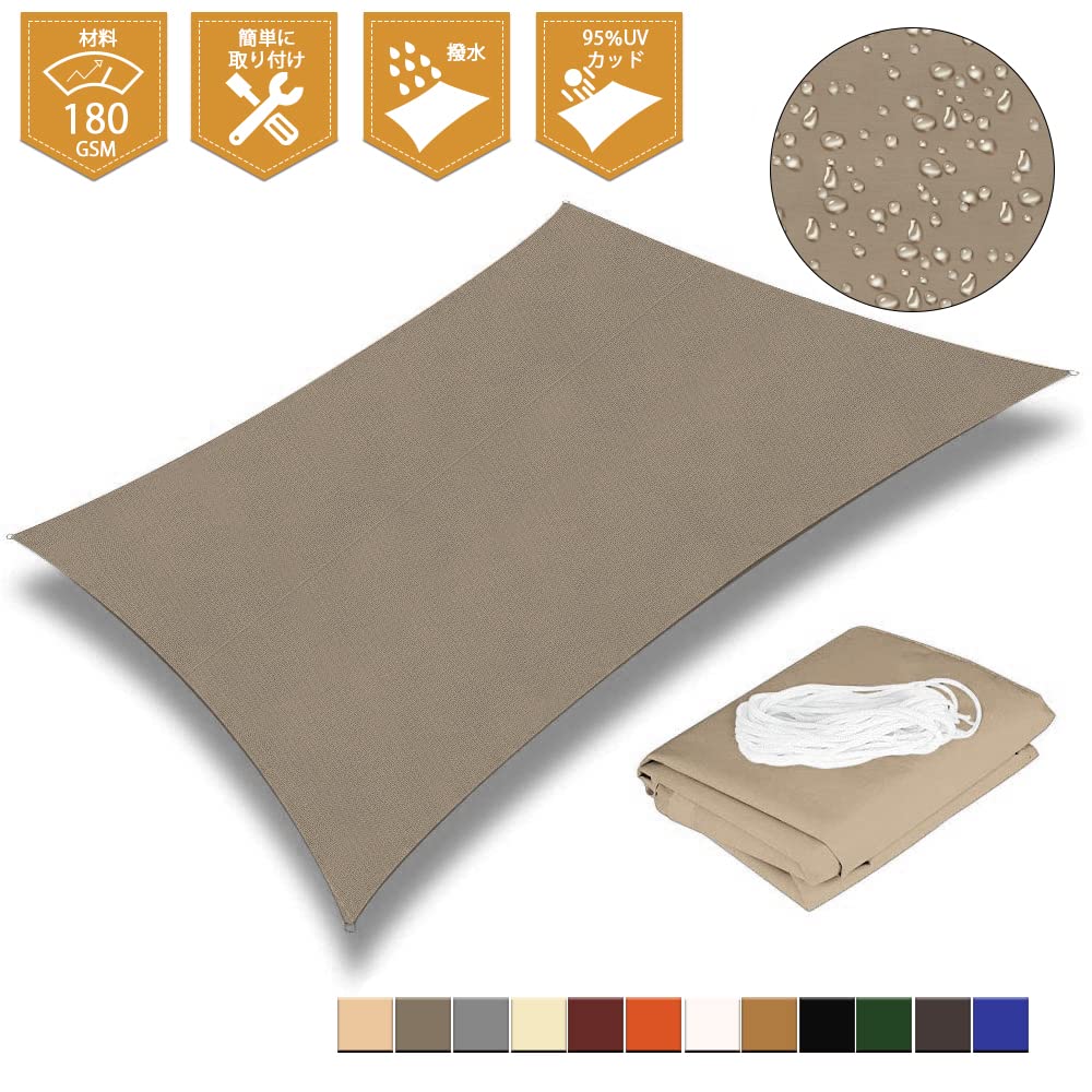 Ankuka 日除けシェード サンシェード クールシェード UVカット 紫外線98%カット 4*5M長方形 軽量 撥水 耐久性 洗濯可能 ベランダ/廊下/庭下/庭先用 収納袋付き(カーキ)
