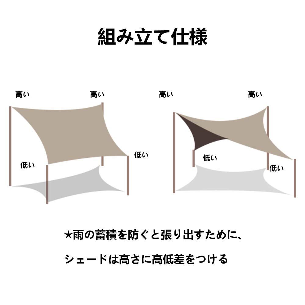 【取り付け簡単】専用ロープとリング付きで、簡単、安全に日除けシェードをお取付けます。ベランダや庭木、キャンプサイトなど、さまざまな場所に自由自在に設置可能です。また、汚れても水洗いができ、お手入れが簡単です。