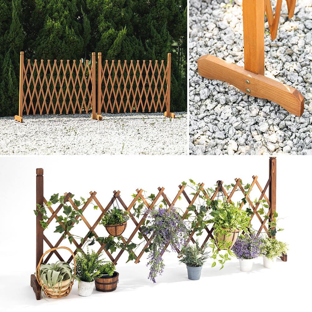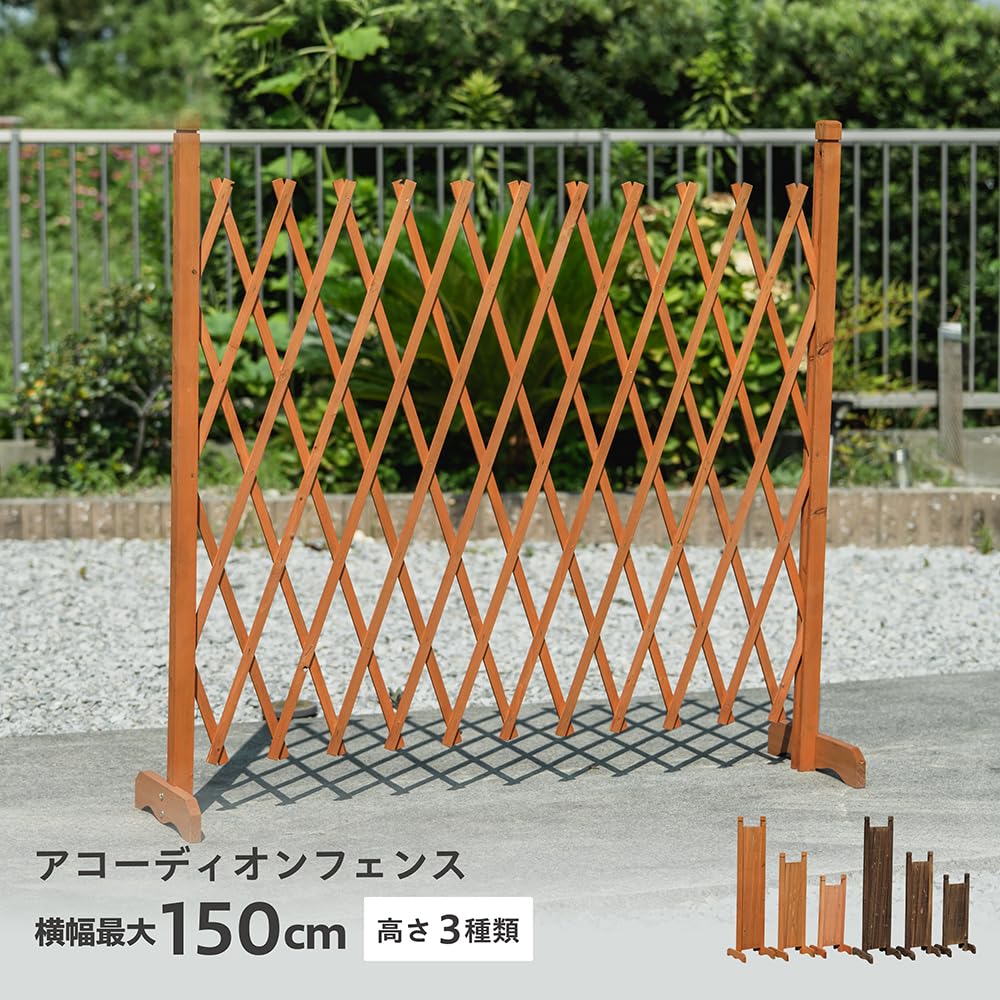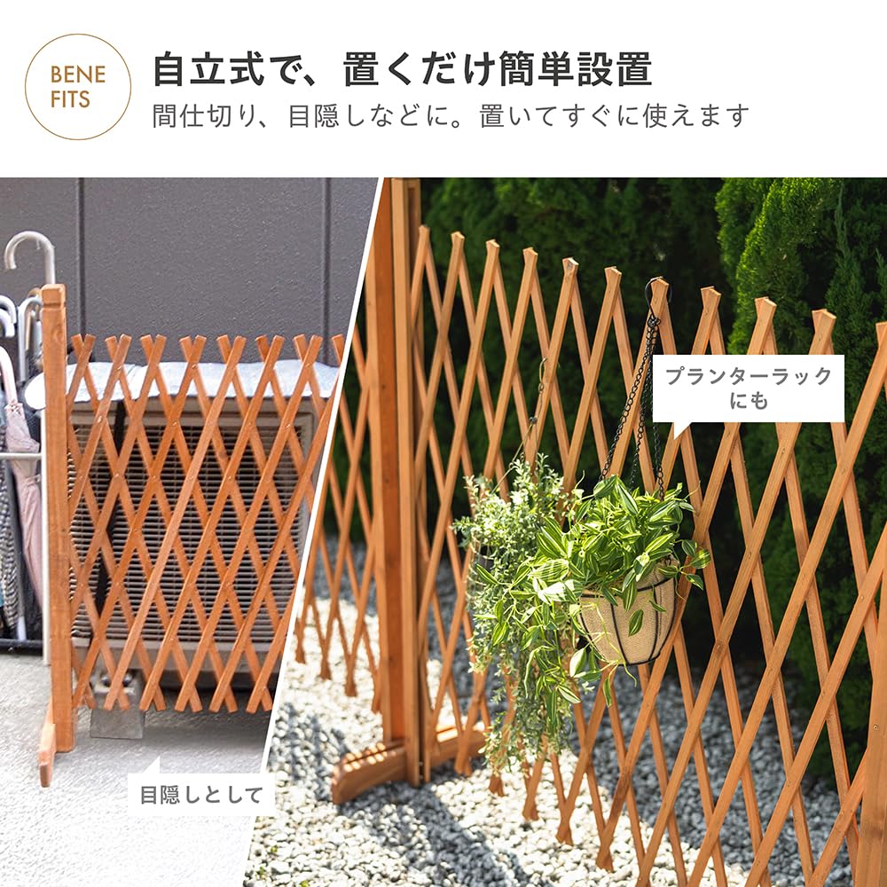 【アコーディオンのように伸ばして広げるフェンス】 温かみのある天然杉材と落ち着いたブラウンカラーが、お部屋やガーデンをアンティーク調に演出します。プランターラックとしても使える設計で、お気に入りの花や小物を飾って、おしゃれな垣根として活用できます。