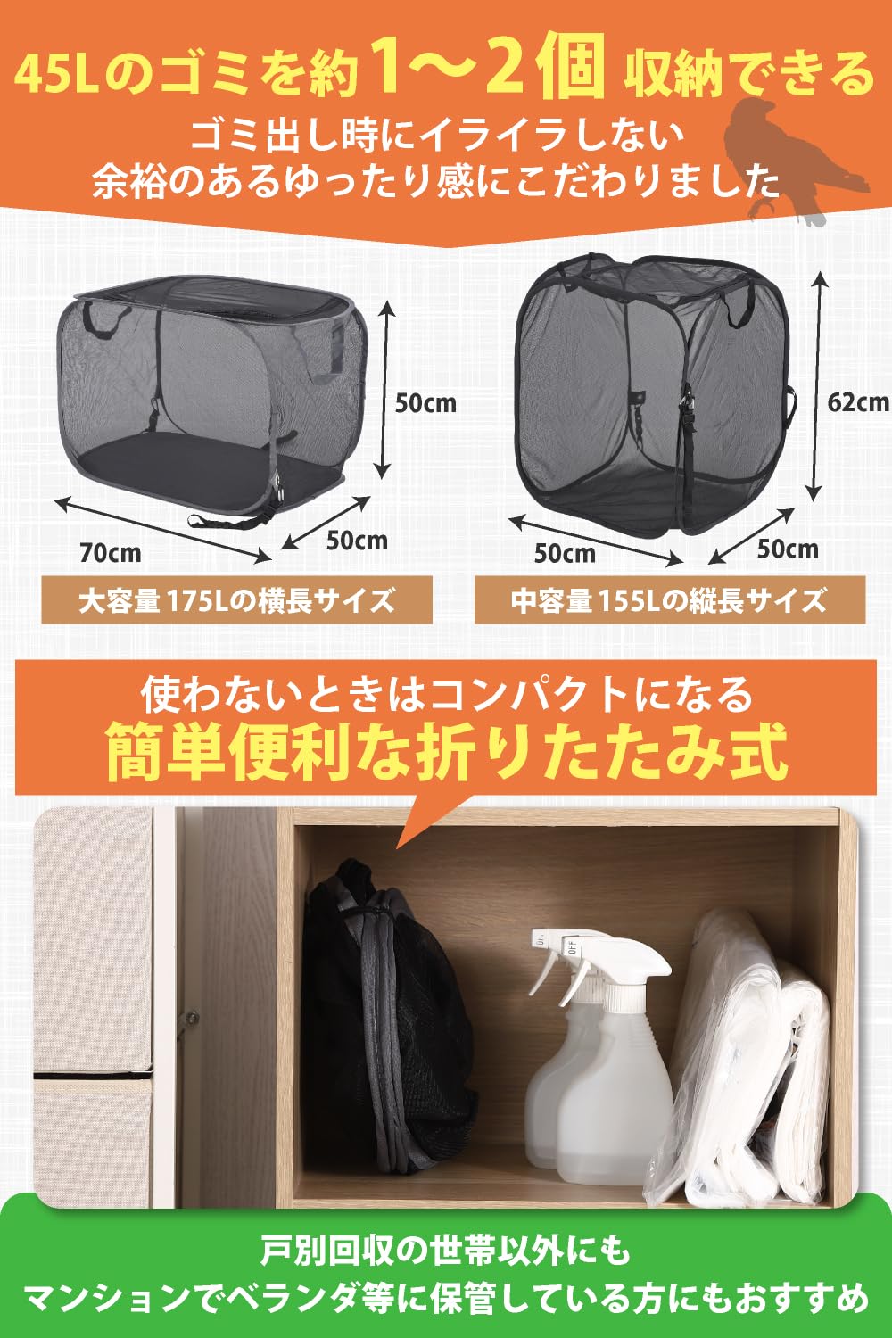 カラスよけネット ボックス 折り畳み 烏除け カラスよけゴミ箱 ゴミ カラス対策 猫よけ対策 (175L)