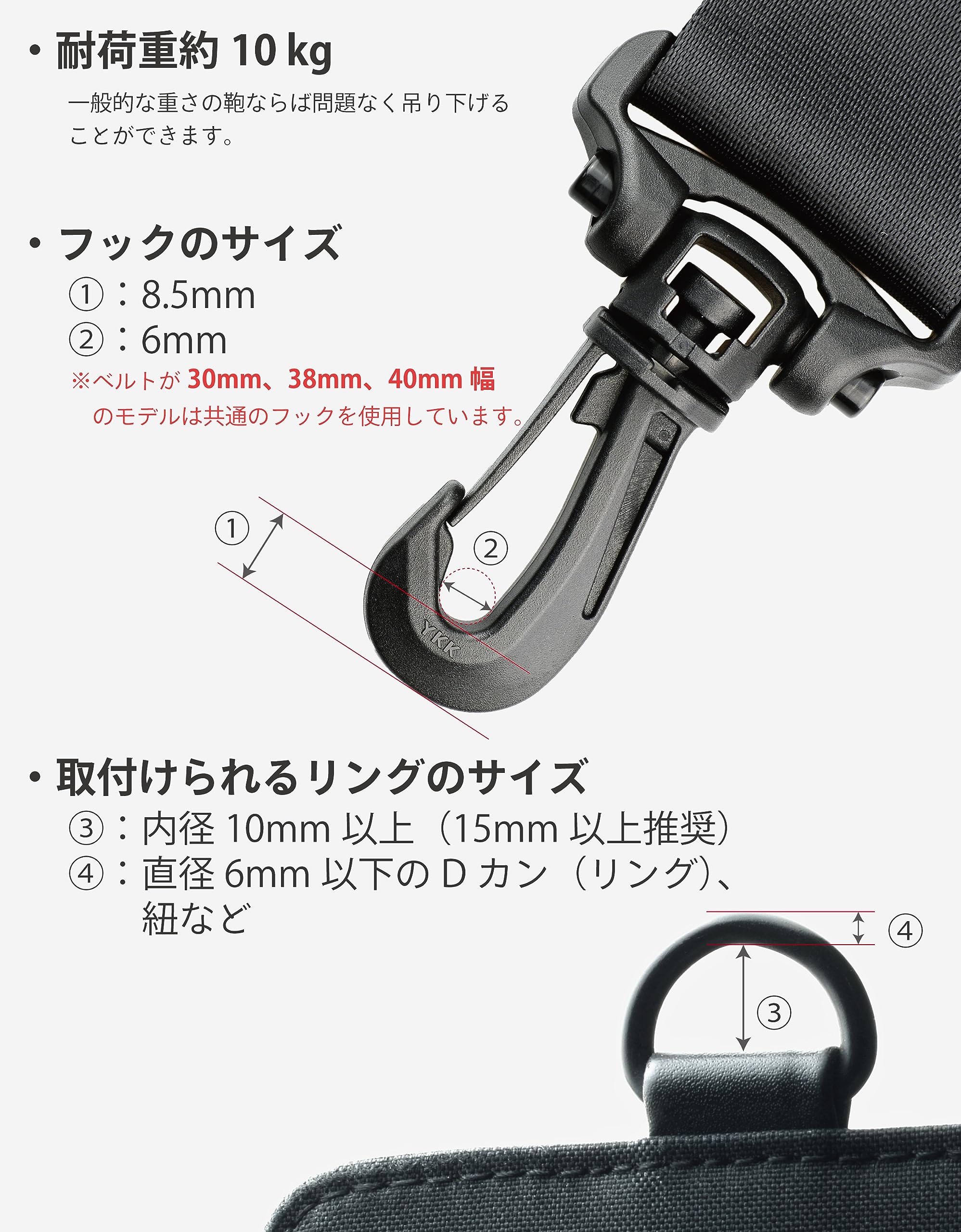 耐荷: 約10kg(フック一つ)