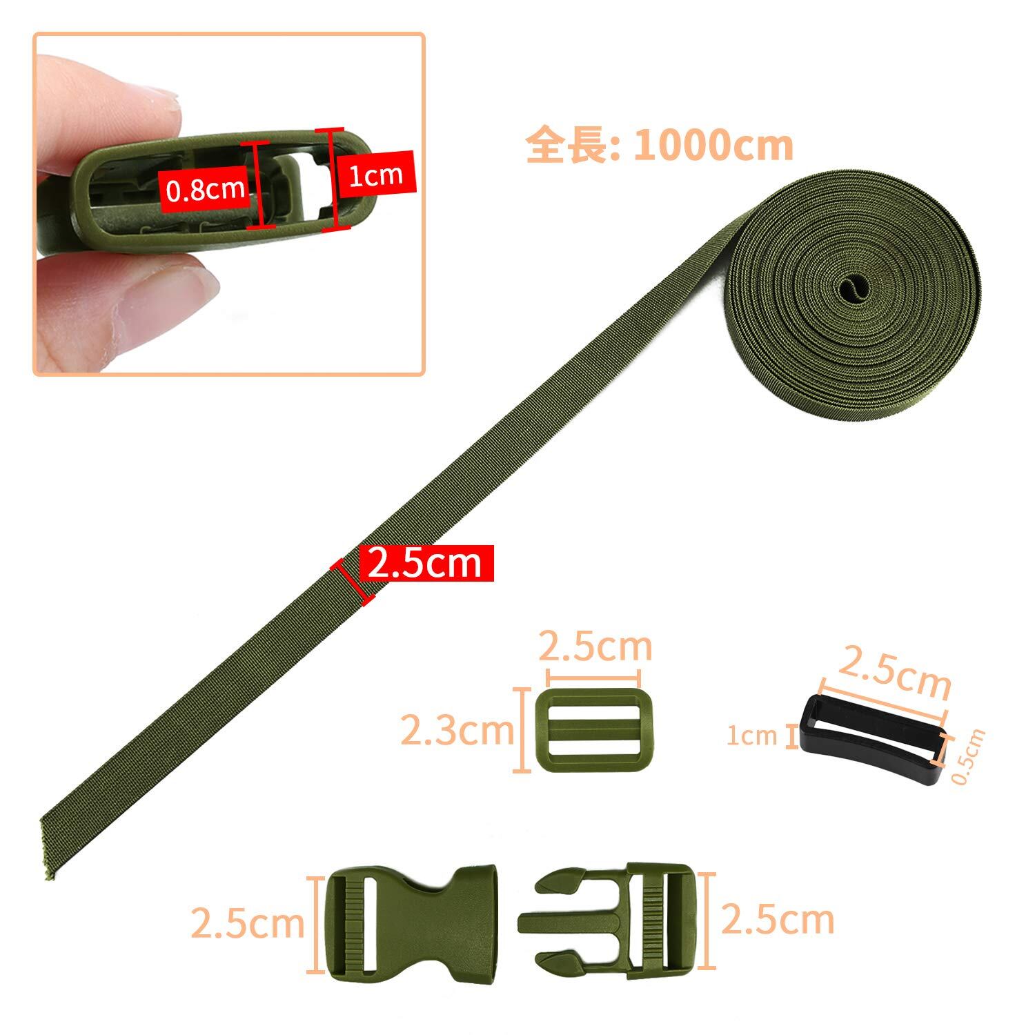 【サイズ】ベルト幅:約2.5cm、長さ:約1000cm、バックル:10個、スライダー:10個、スクエアリング:10個。