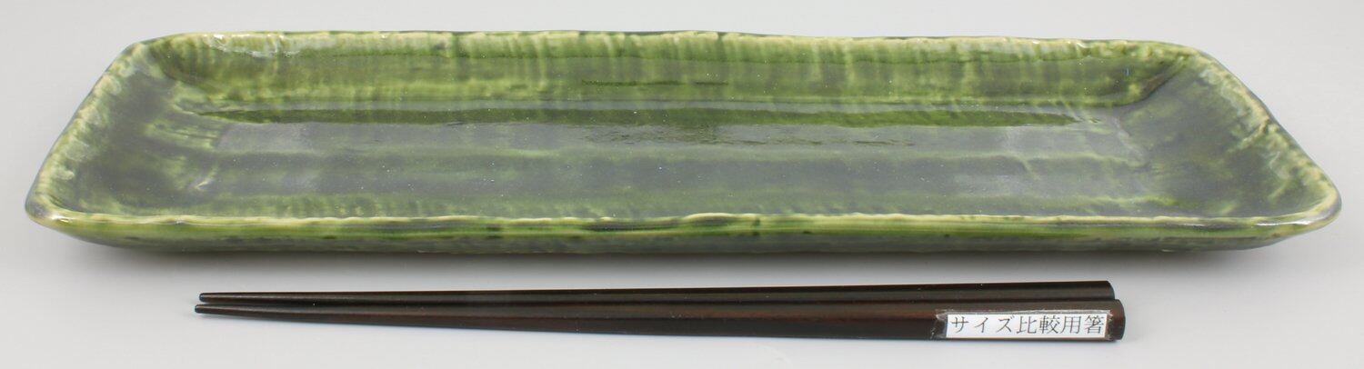 瀬戸焼 緑風園 長皿 長角皿 焼物皿 約直径31×奥行き11cm 魚皿 プレート 総織部 093-0008