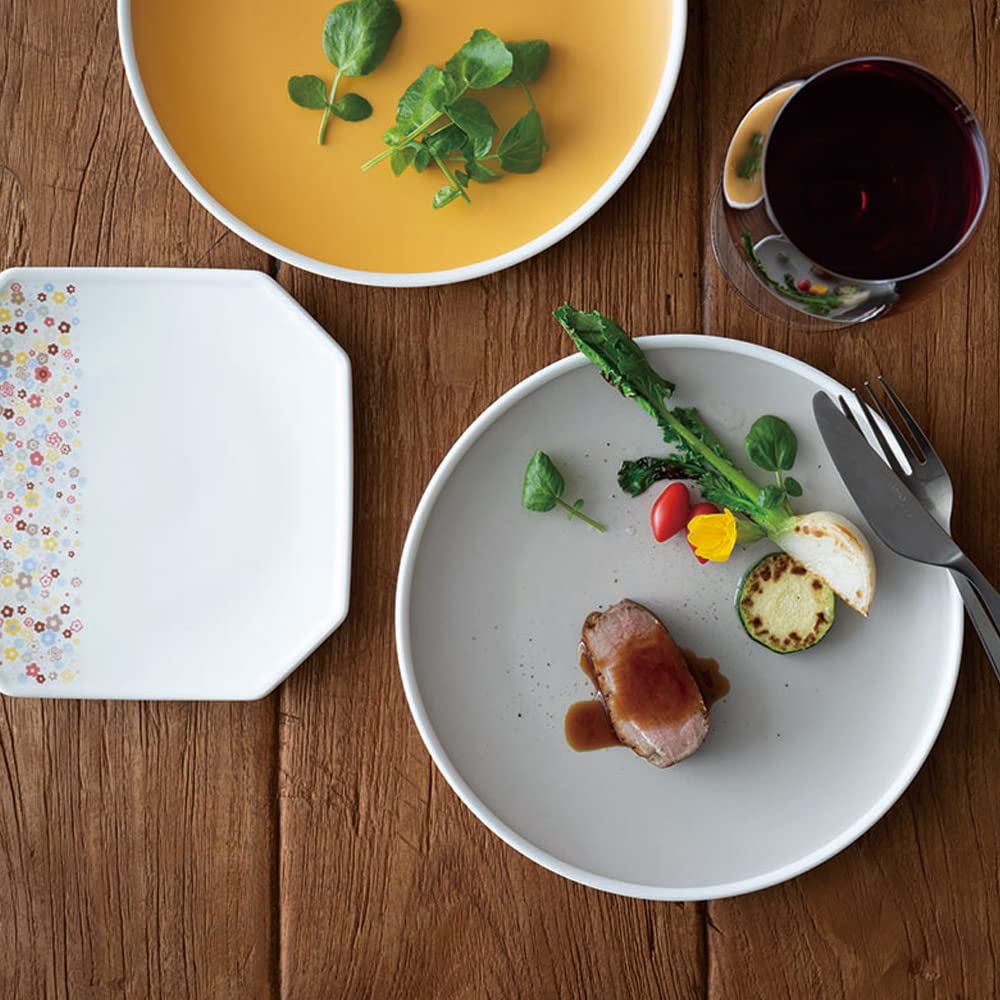 NARUMI(ナルミ) プレート 皿 ポーチュラカ 21cm グレイ シンプル かわいい マットな質感 平皿 母の日 電子レンジ温め 食洗機対応 ギフト箱入り 52451-5880