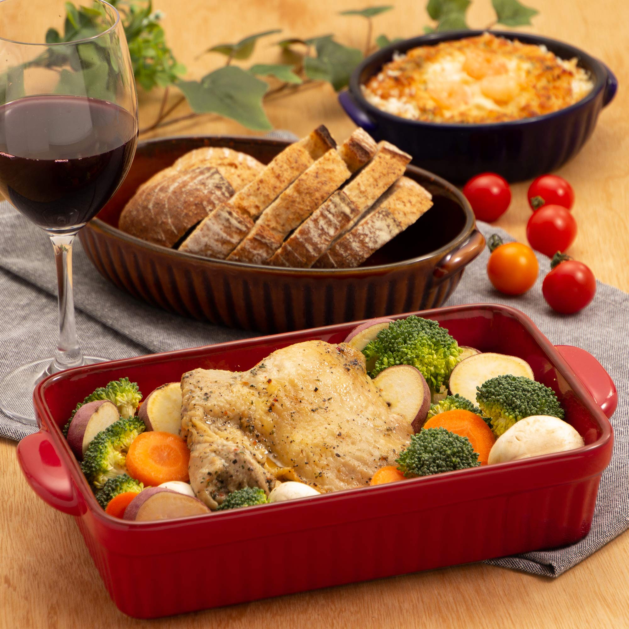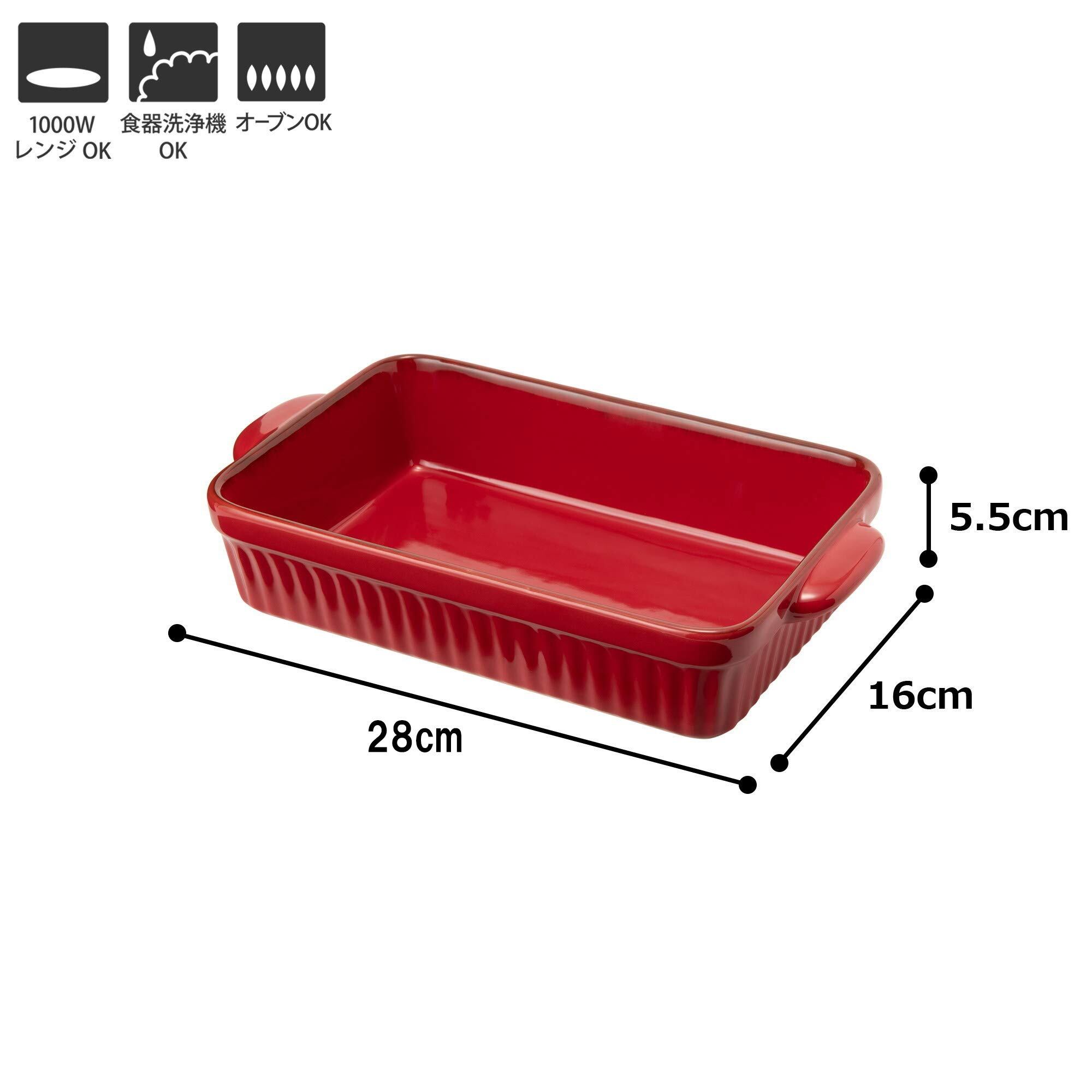 TAMAKI ギャザー ラザニア レッド 直径28.5×奥行16.5×高さ5.5cm 1500ml 電子レンジ・食洗機・オーブン対応 T-775882