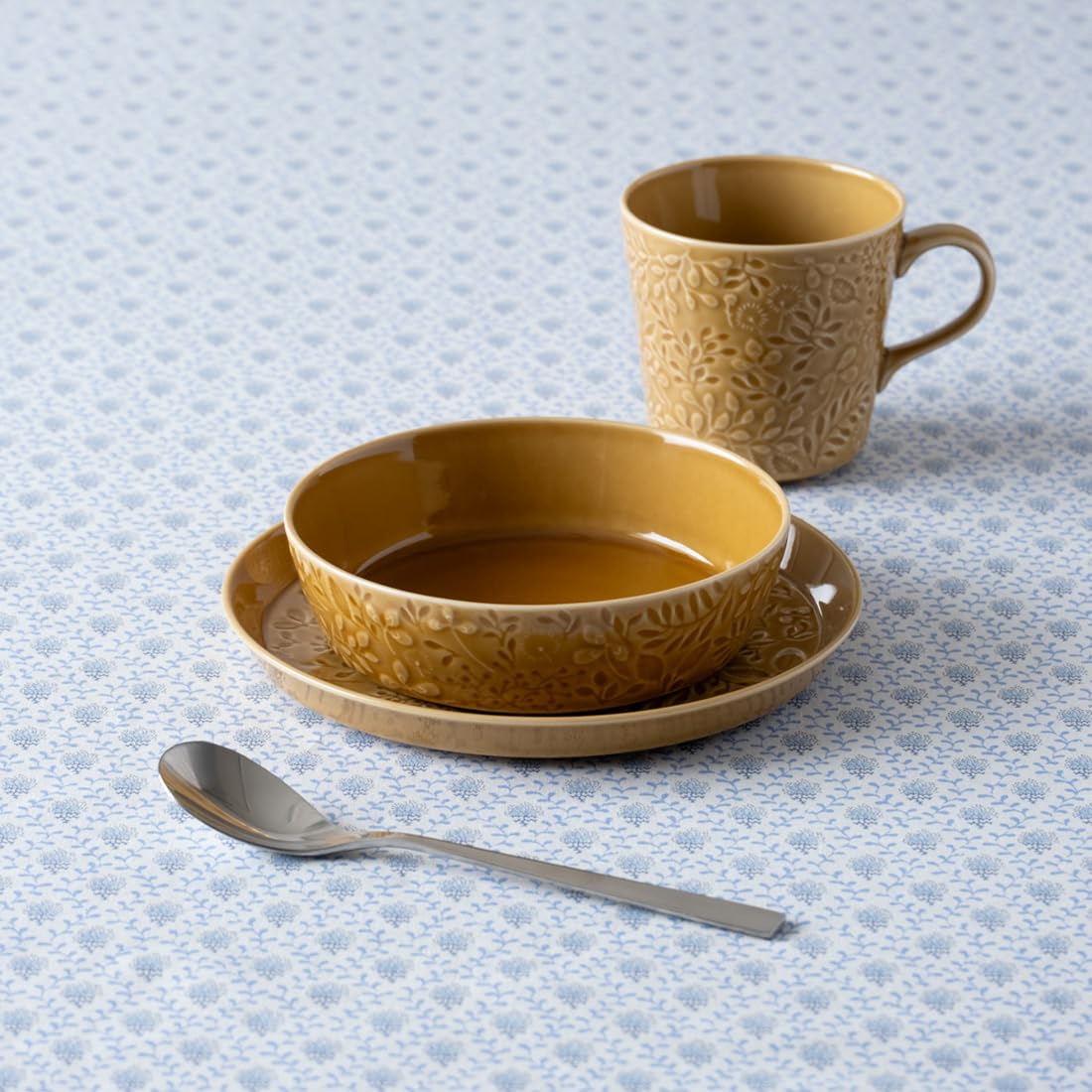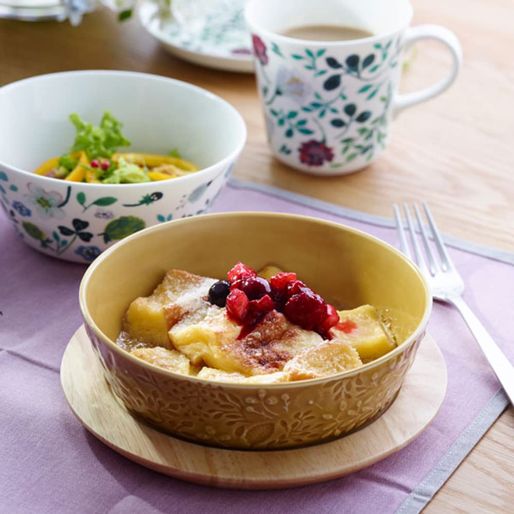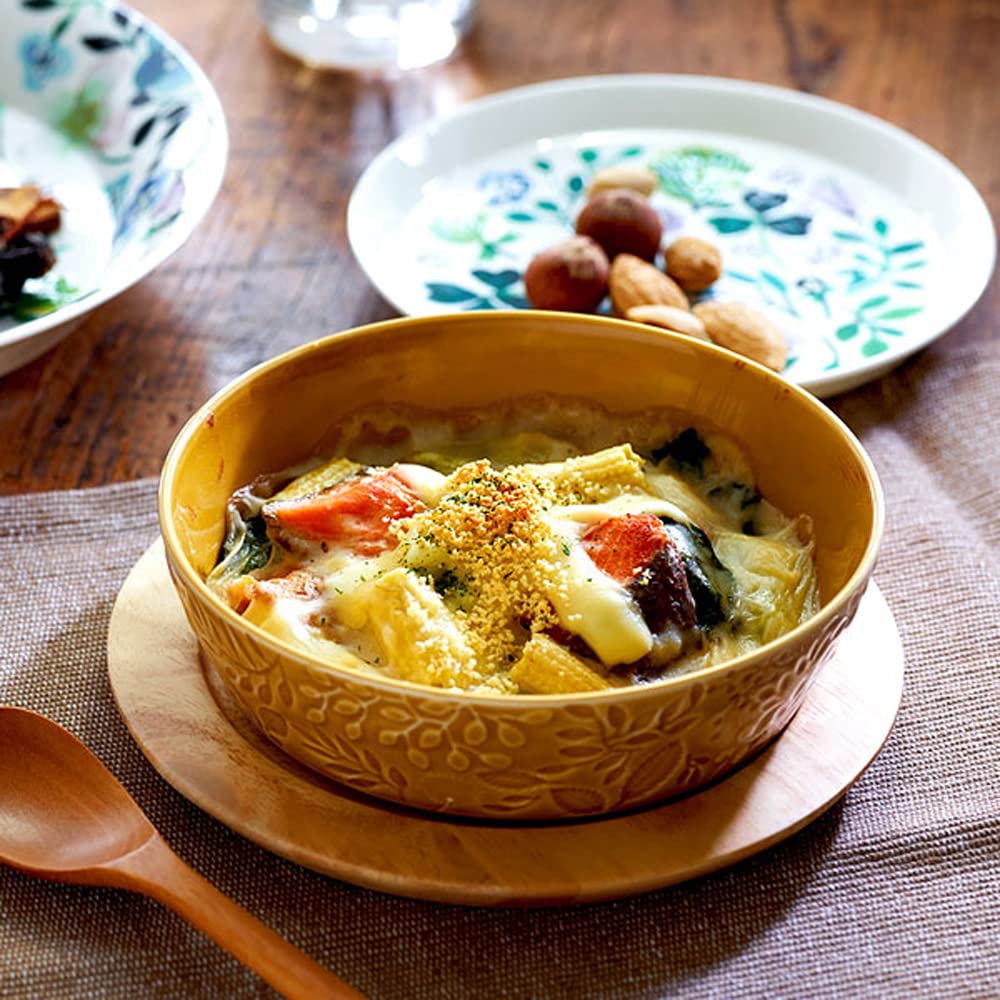NARUMI(ナルミ) グラタン皿 アンナ・エミリア 15cm ミッドサマーメドーアンバー イエロー 花柄 かわいい レリーフ 電子レンジ オーブン 食洗機対応 日本製 ギフト箱入り 41681-3915