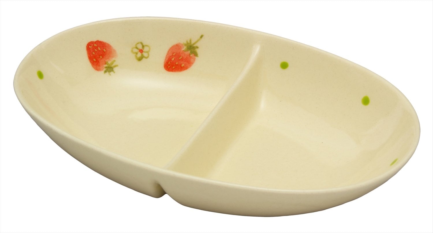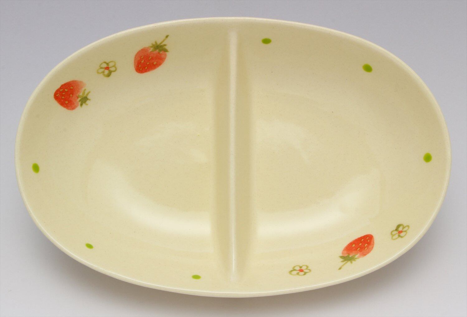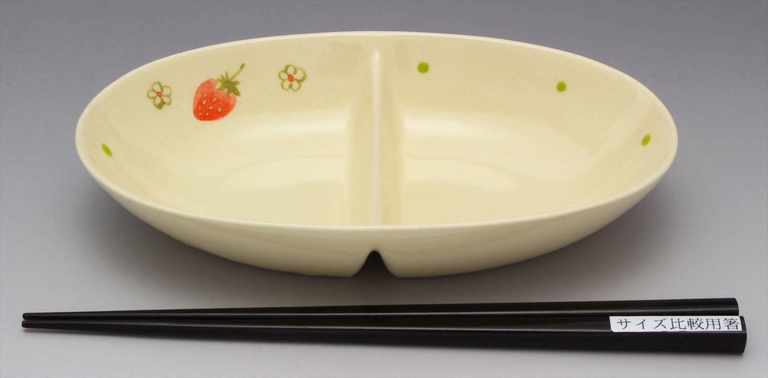 窯元SOUSEN 中皿 白 18cm 瀬戸焼 二つ仕切り皿 フルーツ(いちご)柄