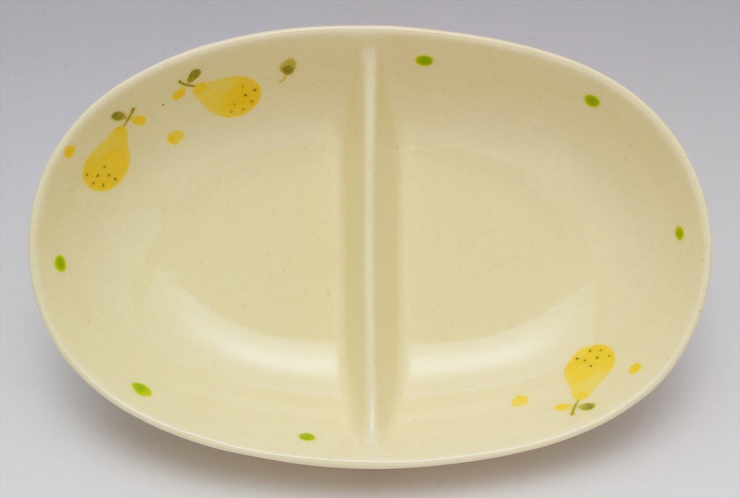 窯元SOUSEN 中皿 白 18cm 瀬戸焼 二つ仕切り皿 フルーツ(梨)柄