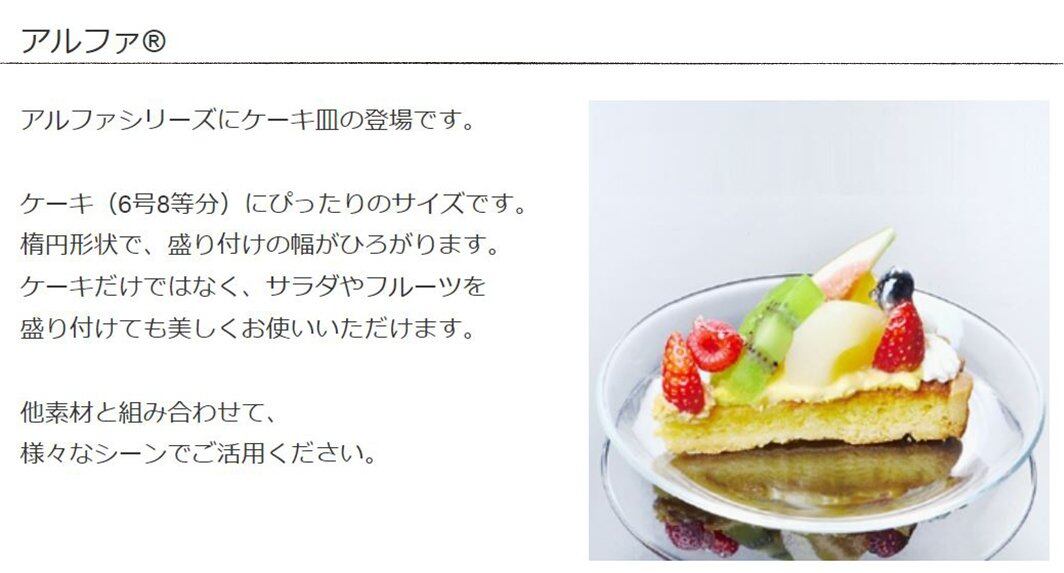 ●楕円形状で、盛り付けの幅が広がります。もちろん、ケーキだけではなくサラダやフルーツを盛り付けても美しくお使いいただけます。