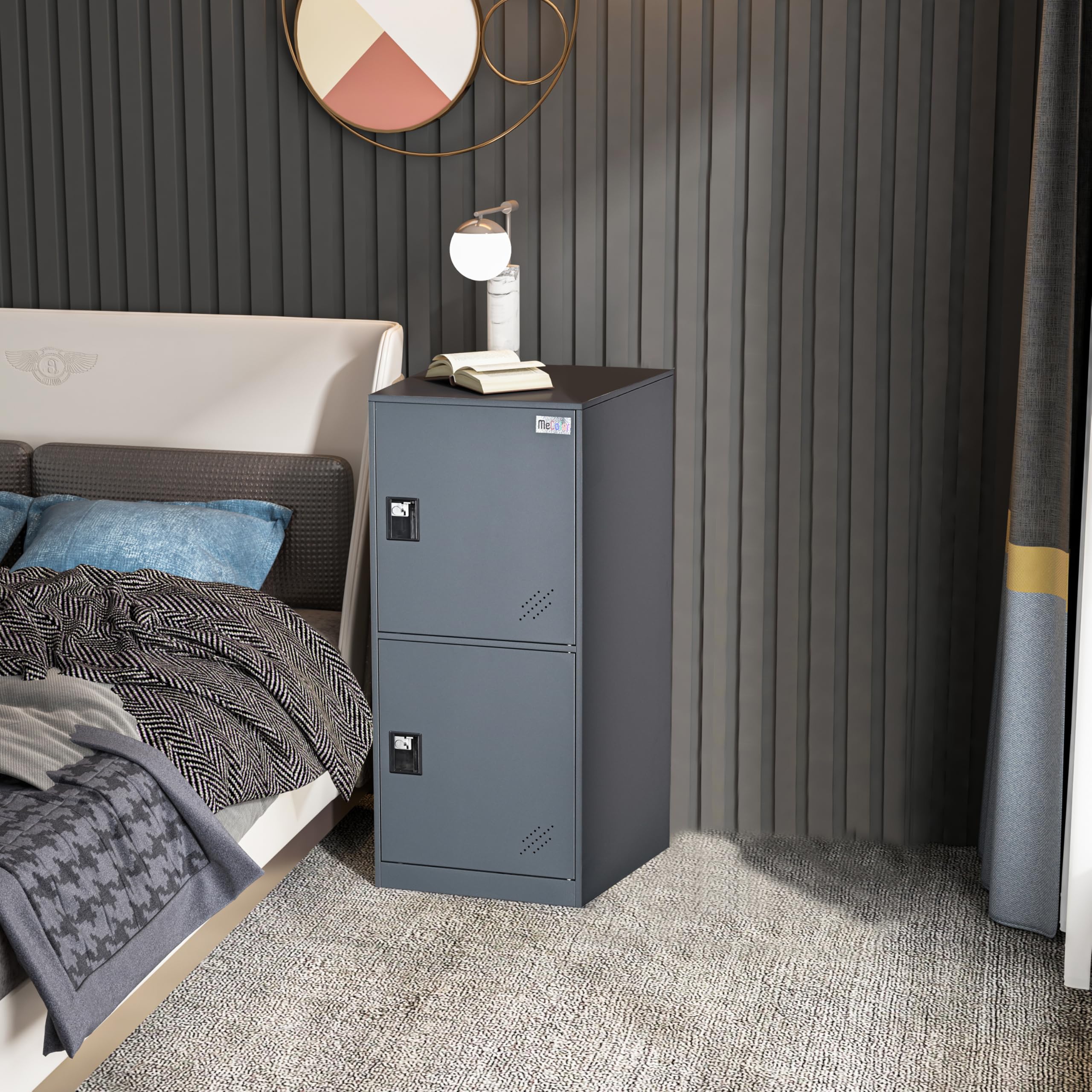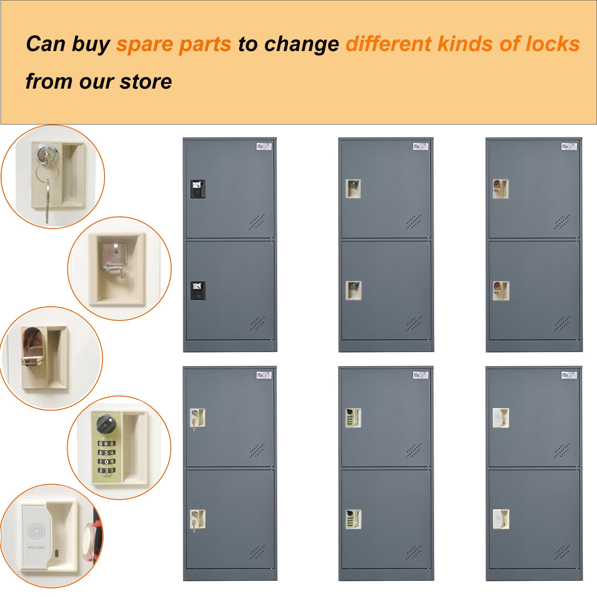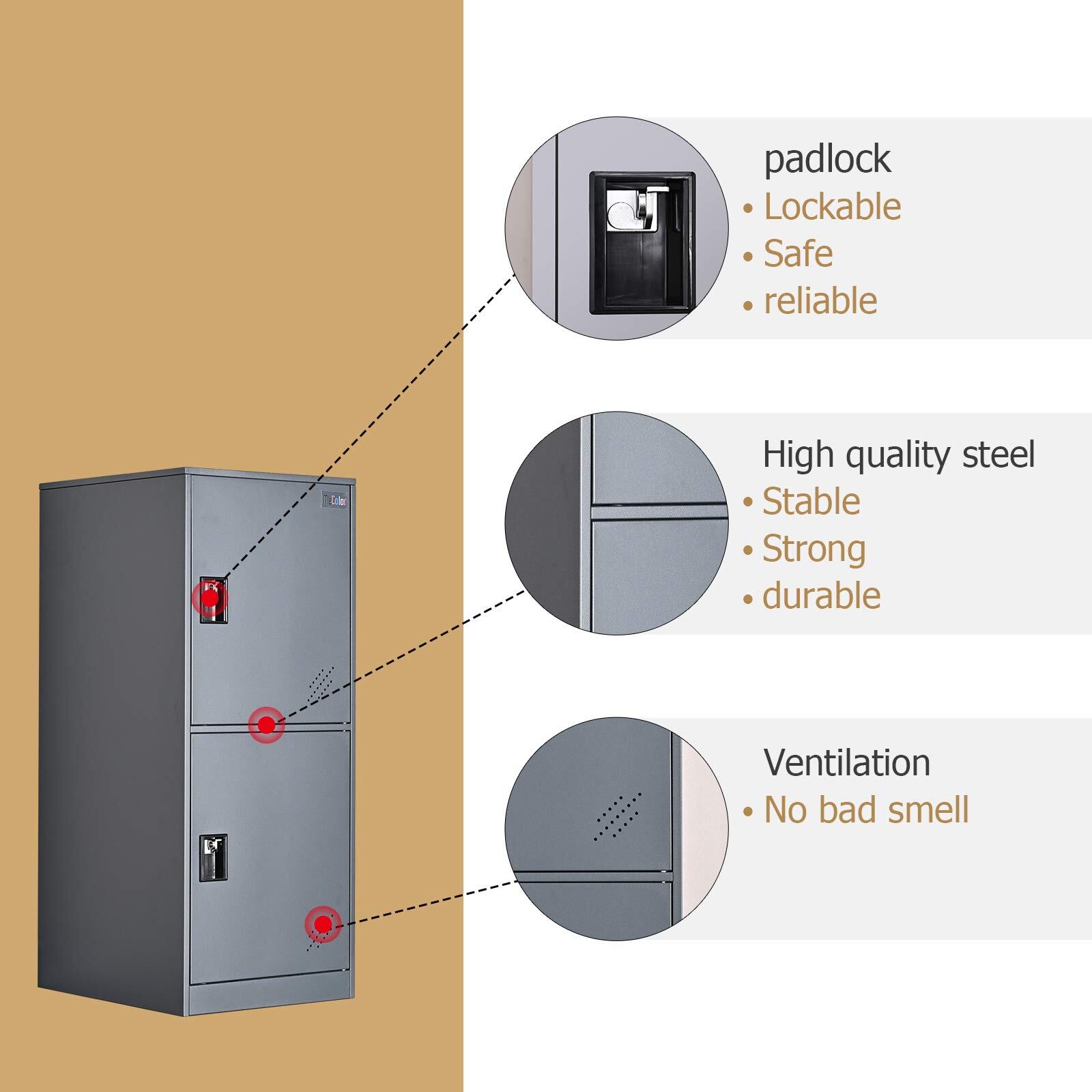 2.ロッカー全体のサイズはH36.4 xW14.9xD17.7 (HxWxD)、単一コンパートメントのサイズはH15.7x W13xD16.3(HxWxD)です。 ロッカーの収納スペースは十分な大きさなので、さまざまなものを保管できます。 たとえば、衣類や書類を保管するためのワードローブやファイルキャビネットとして使用できます。