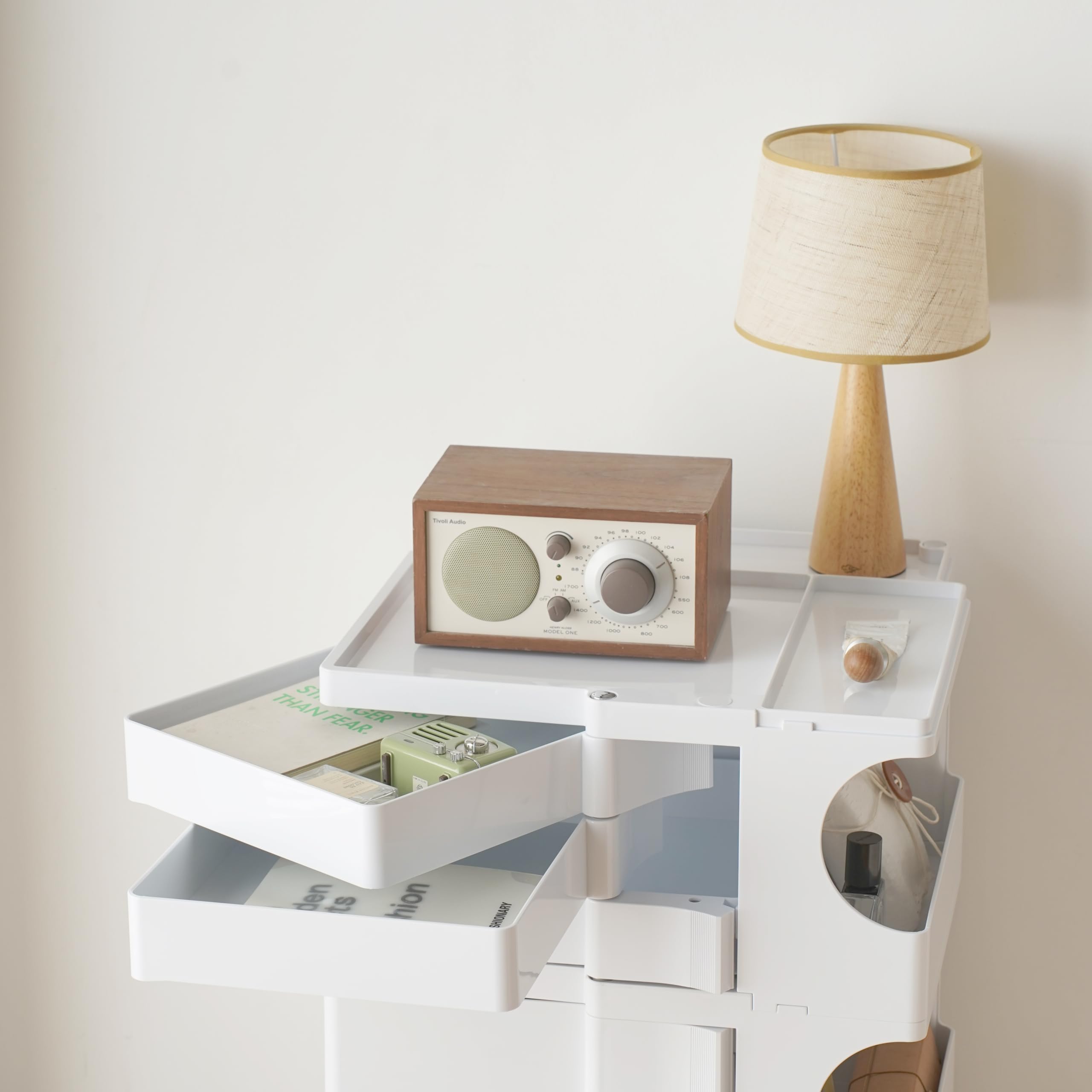 ボビーワゴン レプリカ 回転式手押し車 2段 3段 5トレイロック式キャスター ボビーワゴン専用ウッドトレイ付き (ホワイト, 3段5トレイ)