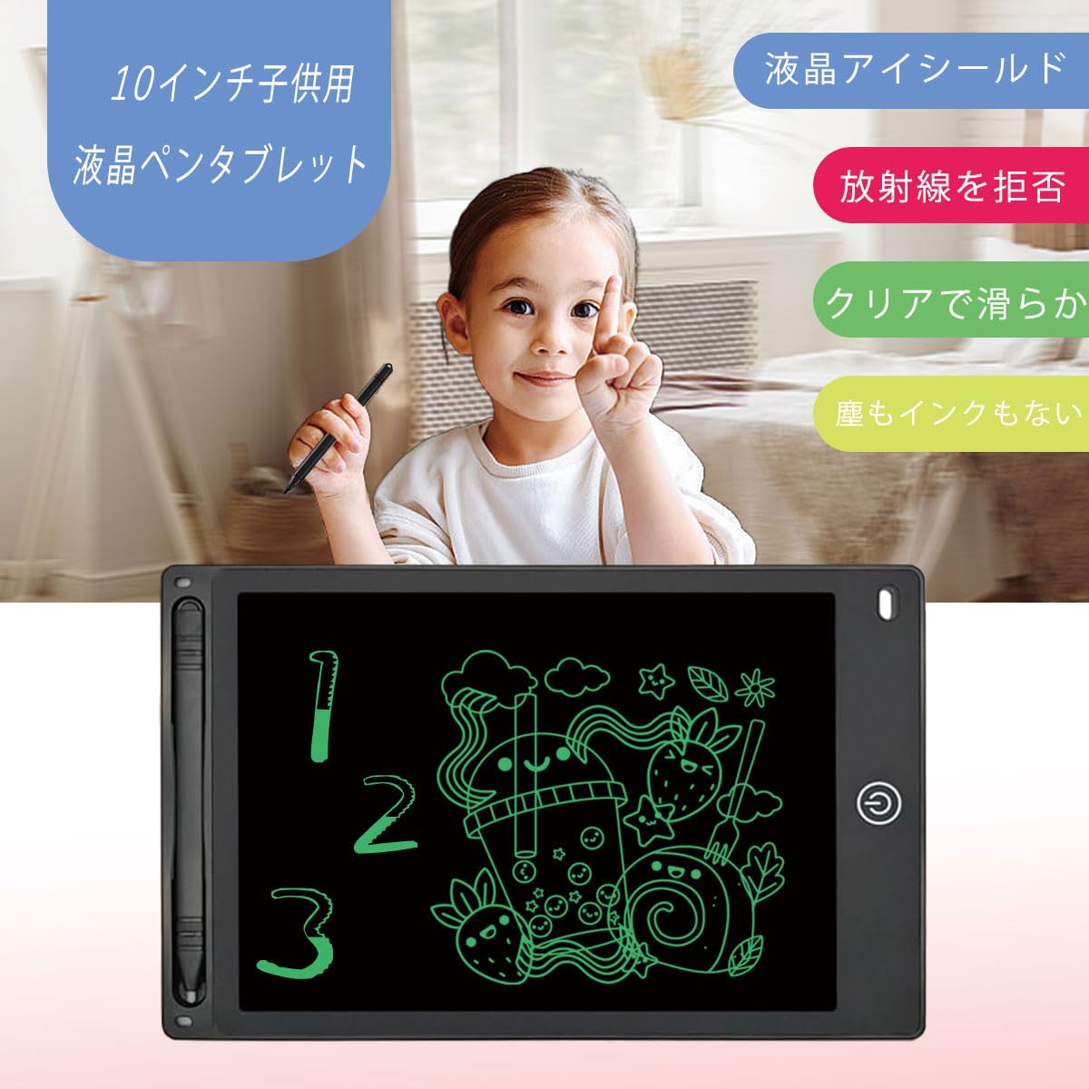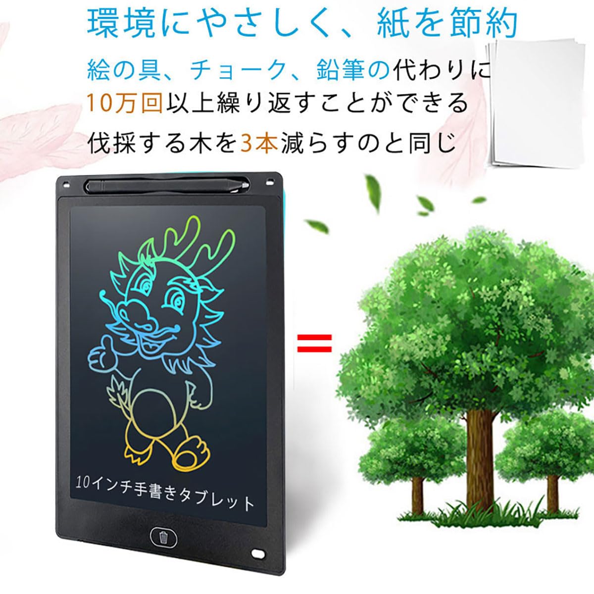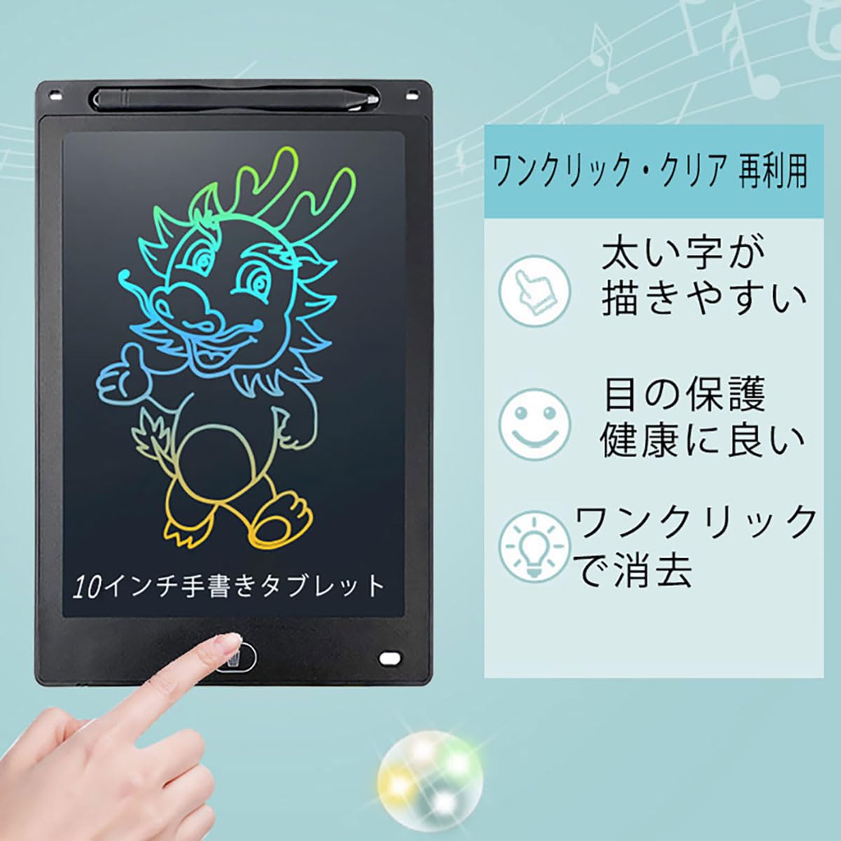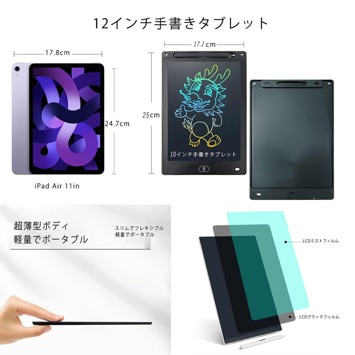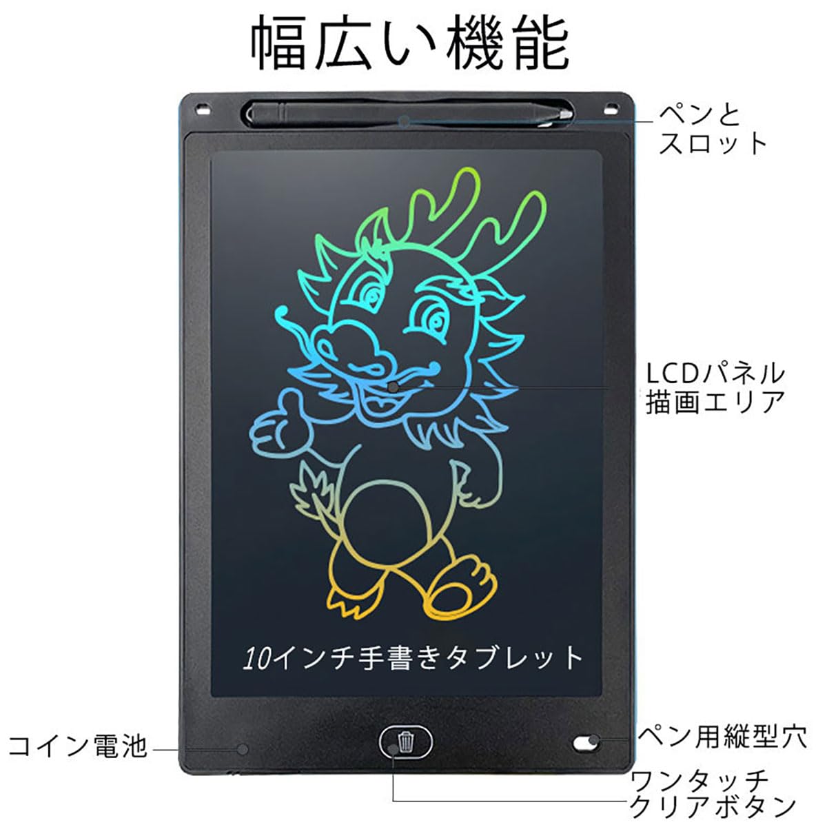 【10インチ大画面】細いフレームを採用、画面も大きく見えます。薄くて軽量(約120g,25cm*17.2cm)なので持ち運びにもぴったり、打ち合わせや商談、アウトドアにも重宝です。そして、家庭での伝言ボード / お子様のお絵かき/ 単語帳 / 語学学習や計算問題などの学習 / 筆談ツールにも相応しいです。本当に面白い文房具です。