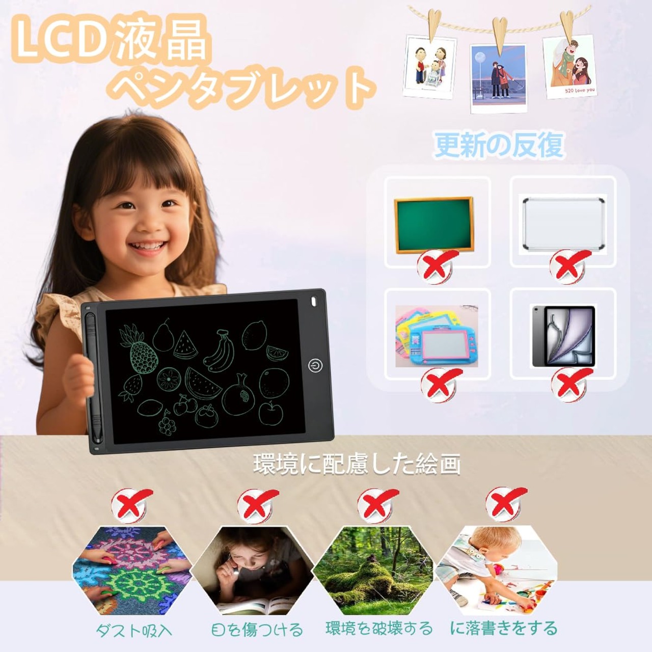 【LCD液晶パネル】液晶画面は色がもっと鮮明となり、そして、視認性の高く、放射線のない青色光技術を使い、目に優しいデザインとなりますので、長時間使用しても目に負担をかけません。目を保護しながら、脳の発育にも役立つ知育玩具として優れる一品です。