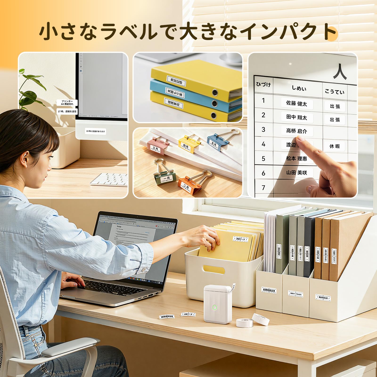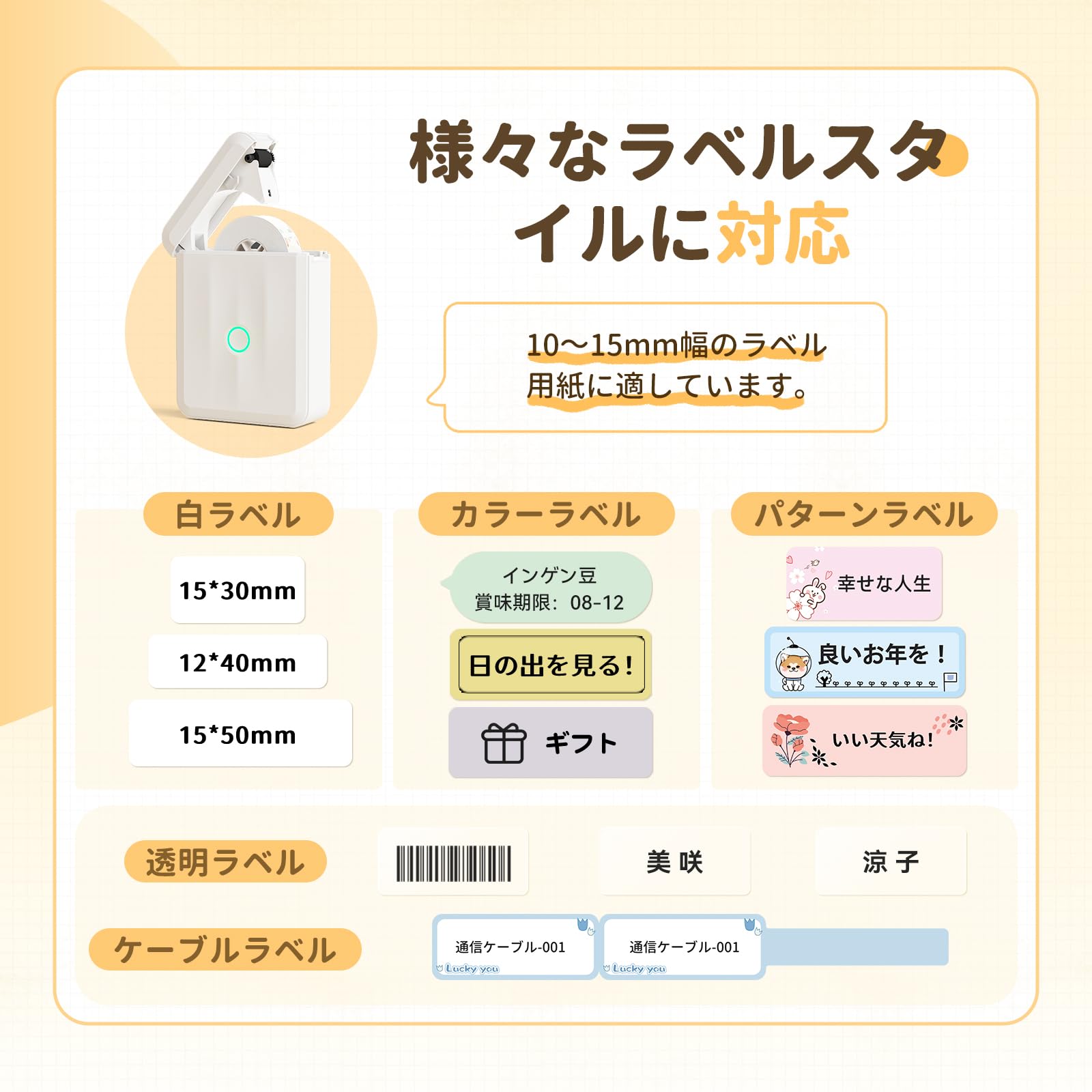 ??【高品質印刷】高速チップと203DPIを搭載し、インクやトナーに頼らず高画質の印刷を楽しめます。本体は耐久性に優れた充電式バッテリーを内蔵しており、長時間使用可能です。ラベルは、黒文字のみを印刷できるモノクロ印刷です。カラーラベルアート作品を作成できますが、印刷にはカラーパターンラベルテープを使用する必要があります。