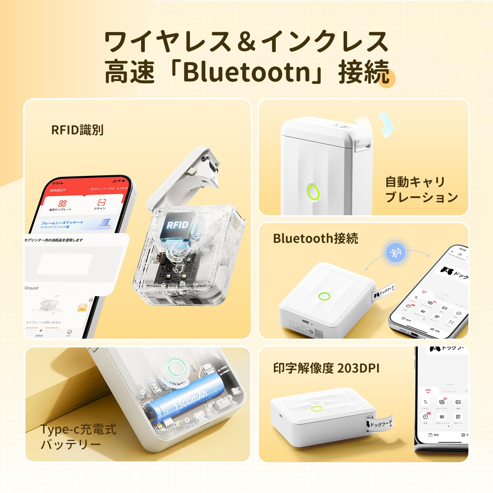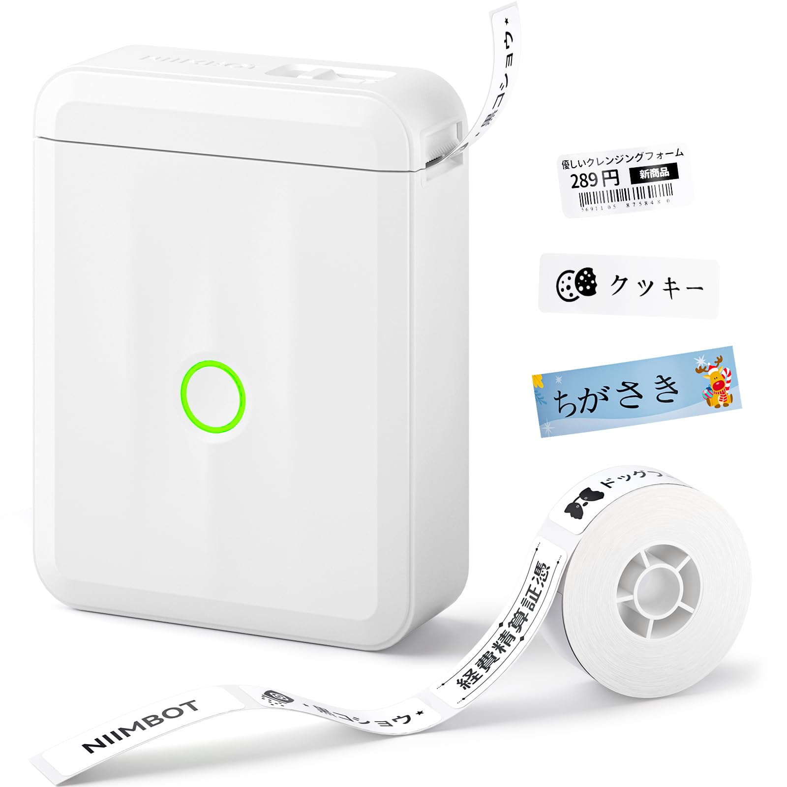 NIIMBOT D110 新版 ラベルライター Bluetooth接続多機能ラベルプリンター ラベル 携帯便利 自動紙戻し 自動ラベル認識 Android & iOS対応 USB充電式 書類整理/名前シール/値札シール/調味料などに適用 対応テープ幅12-15mm ロール紙1個付き 日本語取扱説明書付き(ホワイト)