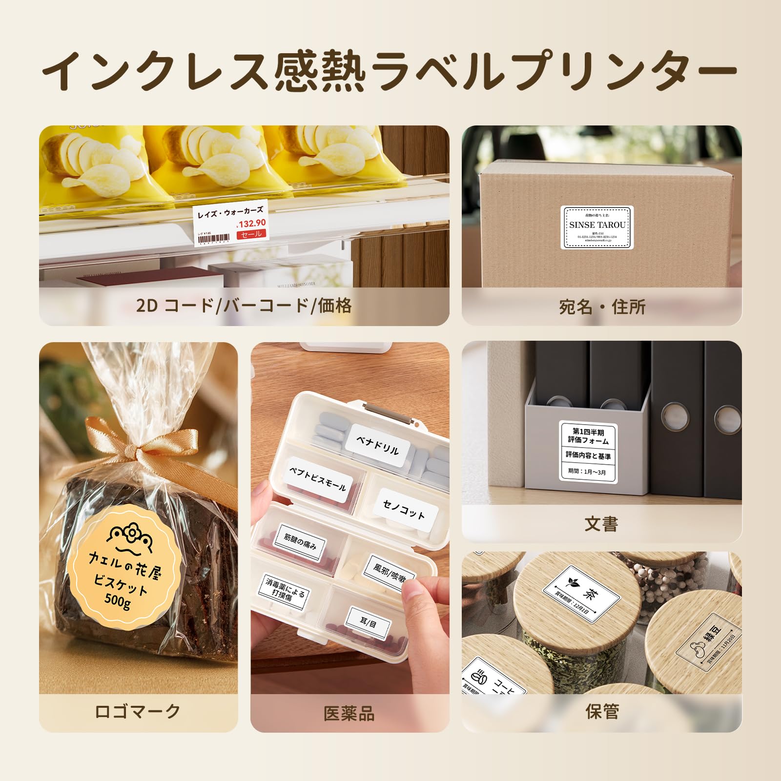 【300DPI高精細印刷】高速チップと300DPIを搭載し、インクやトナーに頼らず高画質の印刷を楽しめます。本体は耐久性に優れた充電式バッテリーを内蔵しており、長時間使用可能です。ラベルは、黒文字のみを印刷できるモノクロ印刷です。初心者でも簡単にさまざまなラベルを印刷できます。さらに、ラベルの内容や位置を調整して、ニーズに合わせたラベルを作成できます。