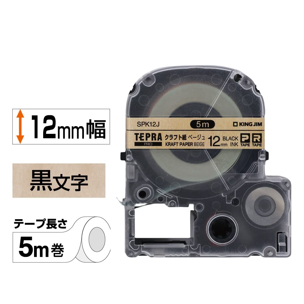 【純正】 キングジム(Kingjim) テプラPROテープカートリッジ クラフトラベル 12mm クラフト紙ベージュ/黒文字 長さ5m SPK12J