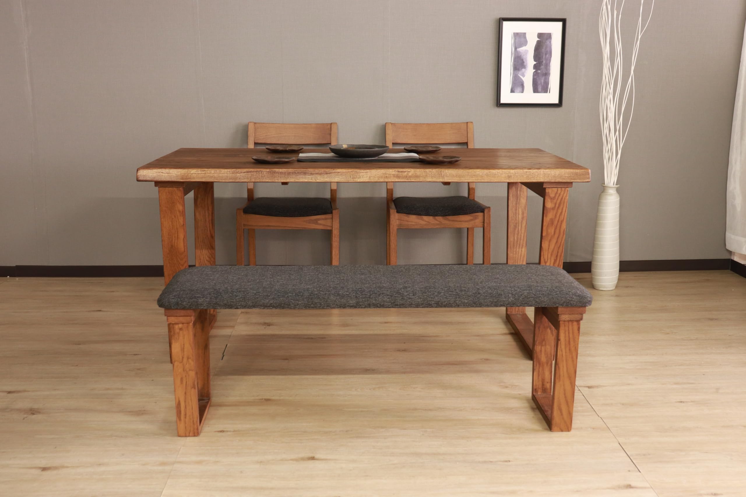 レッドオーク無垢材を使用したダイニングベンチ。