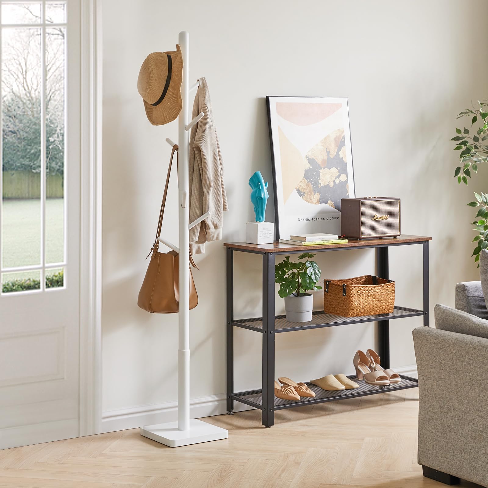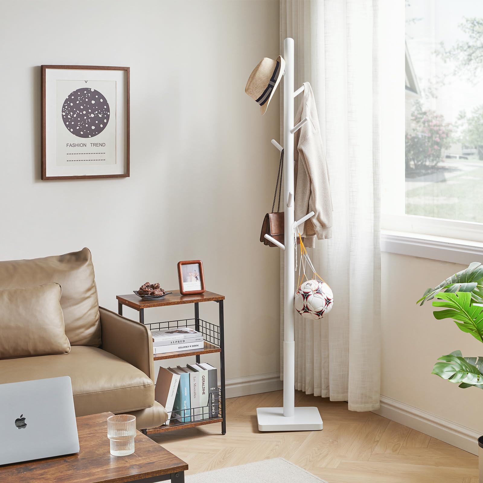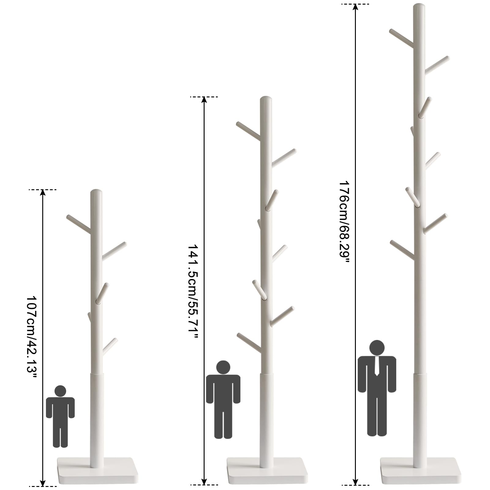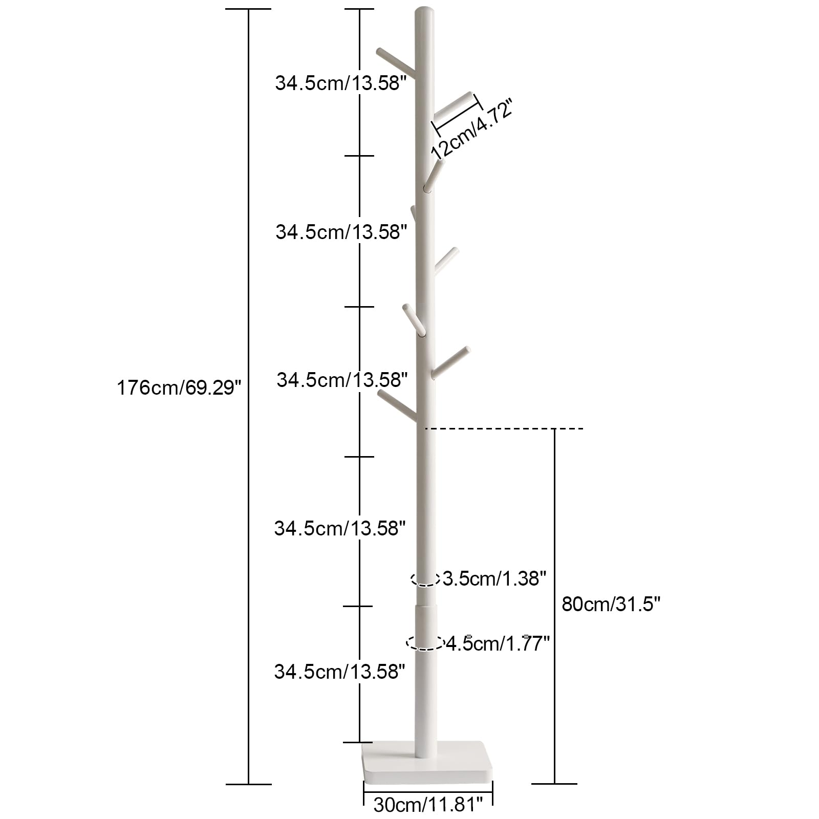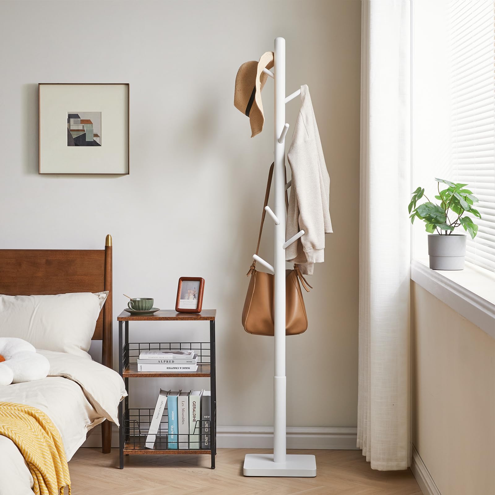 YMYNY ポールハンガー 木製 ラバーウッド 安定スクェアベース 高さ三段階調節 8つフック 組み立て簡単 コンパクト 帽子・かばん・洋服掛け 約29x29x176cm コートハンガー ハンガースタンド ホワイト JPHCR002W