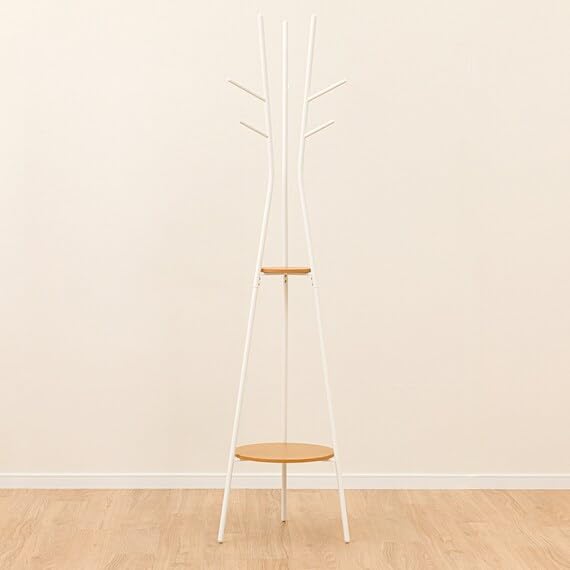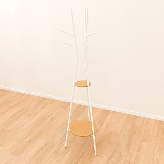 ニトリ(NITORI) 棚付き ポールハンガー SR02 幅44.5×奥行44.5×高さ181cm ライトブラウン/ホワイト 8070978