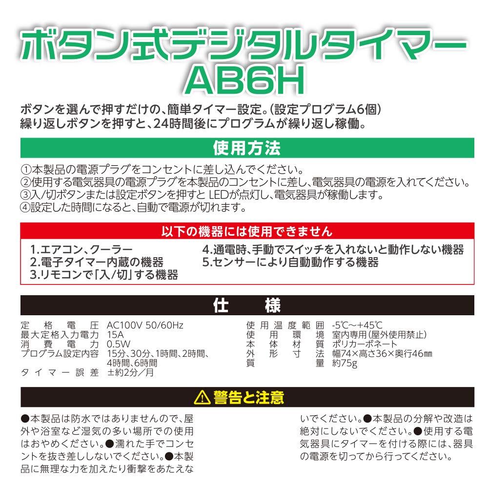 オーム電機 ボタン式デジタルタイマー タイマーコンセント AB6H HS-AB6H 04-8883