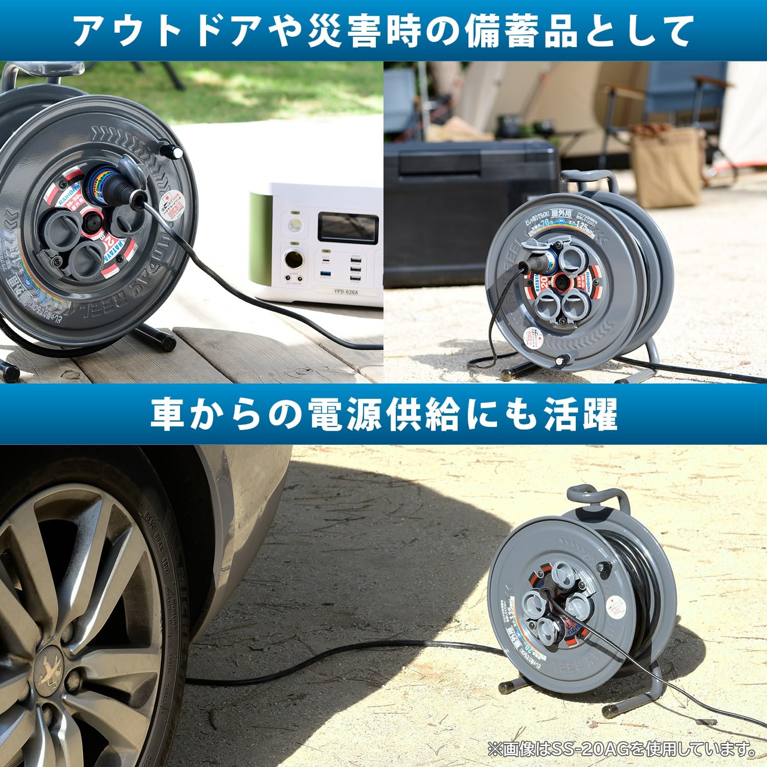 ●便利に使える防雨型のコードリールでコンセントの防雨・防塵キャップは一体成型タイプを採用しており、開閉が簡単です。