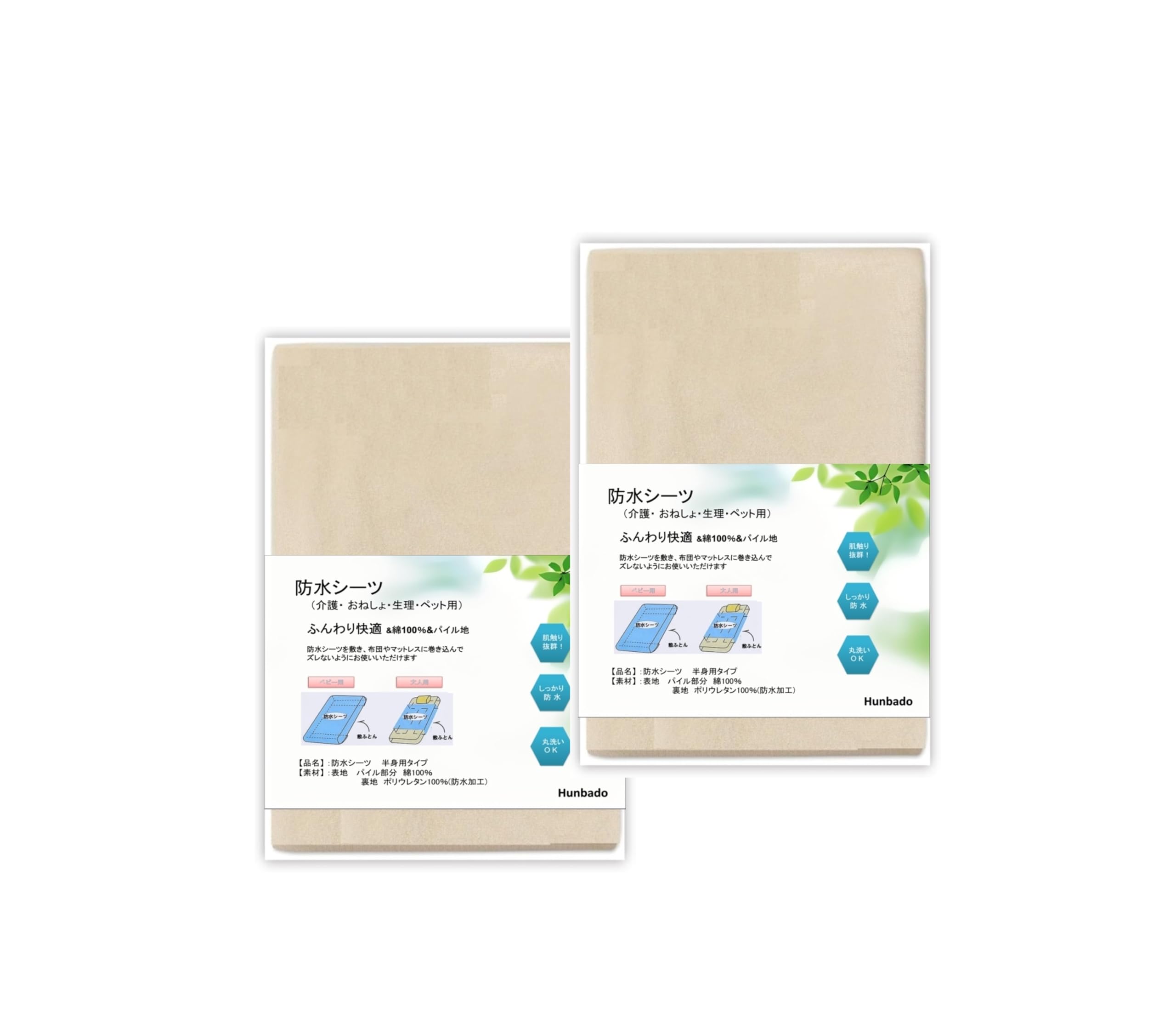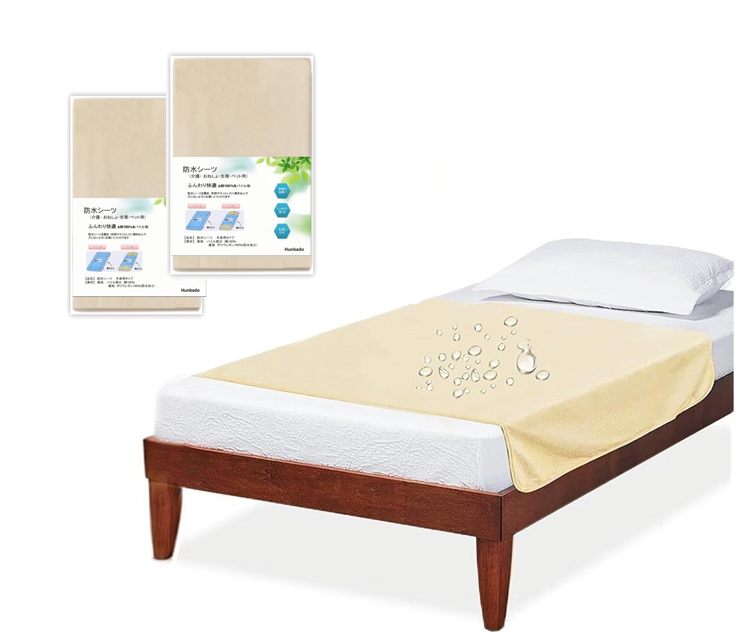 防水シーツ 介護 部分用 2枚セット おねしょシーツ 大人用 ラバーシーツ 介護用品 綿100% 半身用タイプ 100×140cm 防水シート シングル 通気 速乾 お手入れ簡単 丸洗い可 ベビー ペット ベージュ(2枚/組)