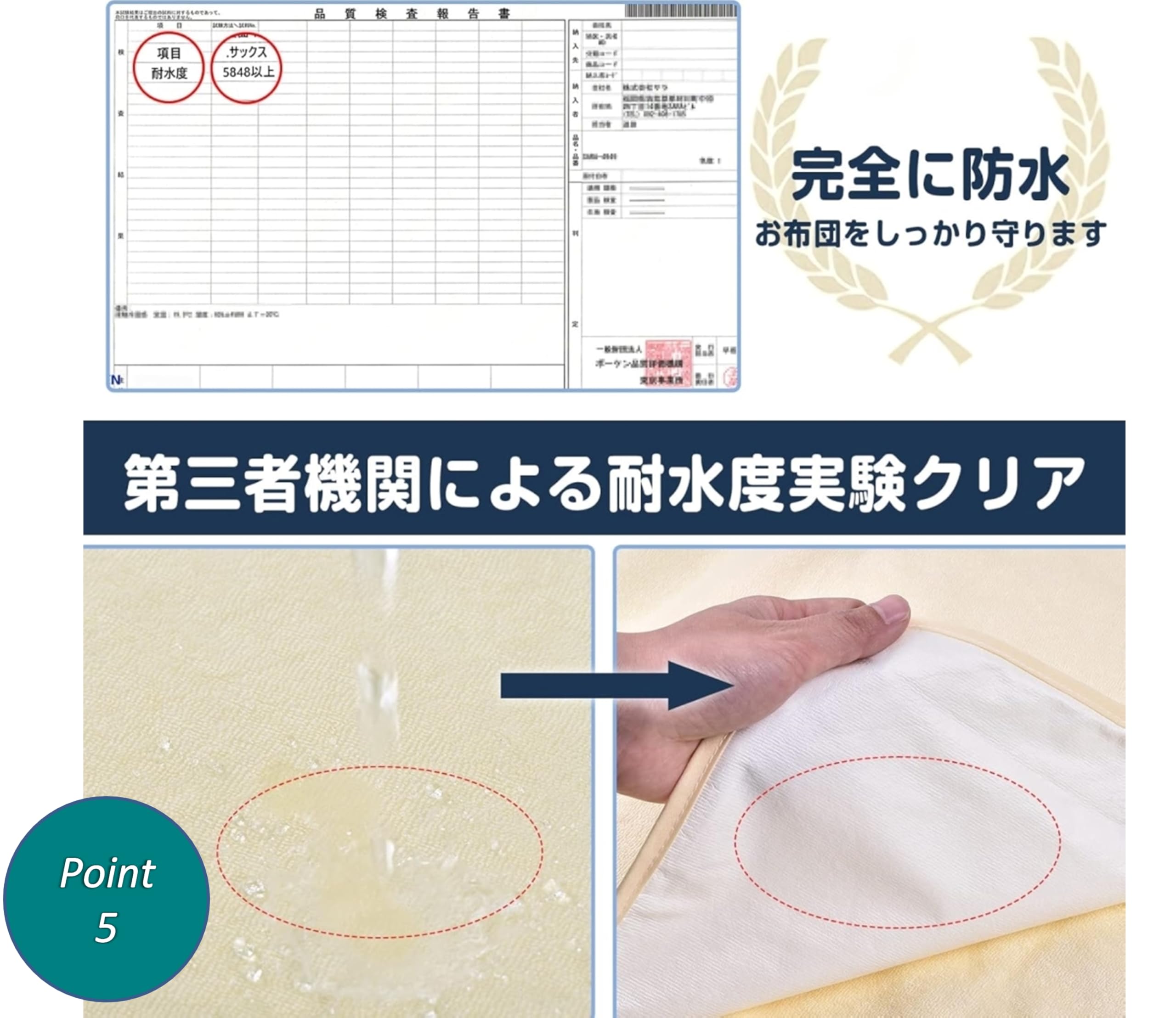 『強力防水・漏れる心配ない』防水シーツ 裏側の「ラミネート加工」でしっかりと水分をはじき染み込みを防ぎます。ラミネートされたポリウレタン裏地で水分をしっかりガードします。小さなお子さんの「おねしょ」対策、介護用シーツ、生理、ペットシーツとして活用されています。