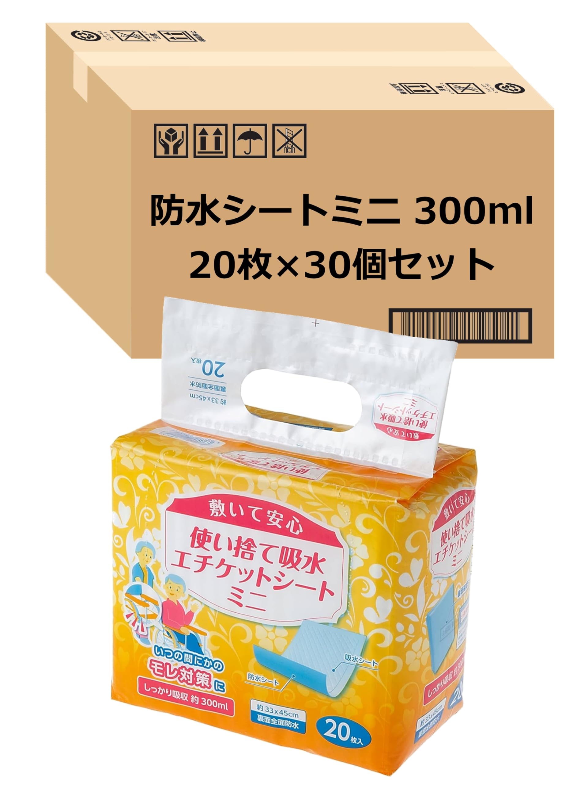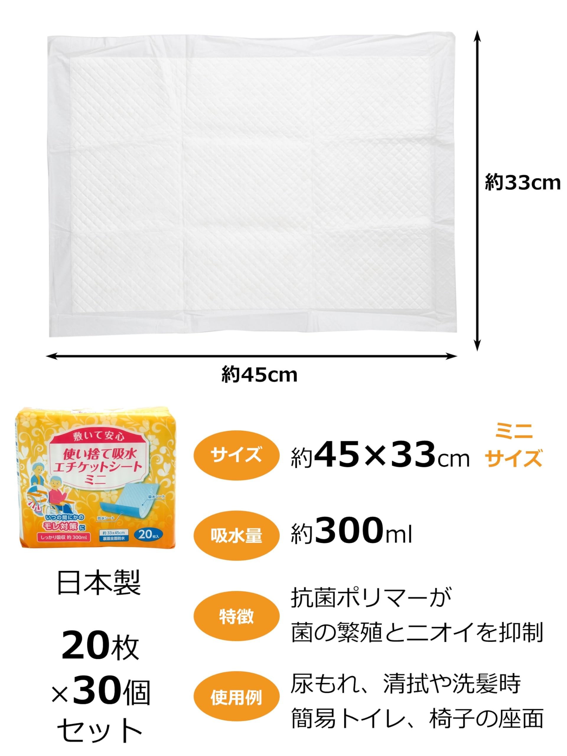 ストリックスデザイン 防水シート 使い捨て 吸水エチケットシート 600枚 (20枚×30個セット) 45×33cm 300ml ミニ ホワイト 抗菌ポリマー 菌の繁殖とニオイを抑える 敷いて安心 介護 洗浄 洗髪 ソファー SK-002 【 限定】